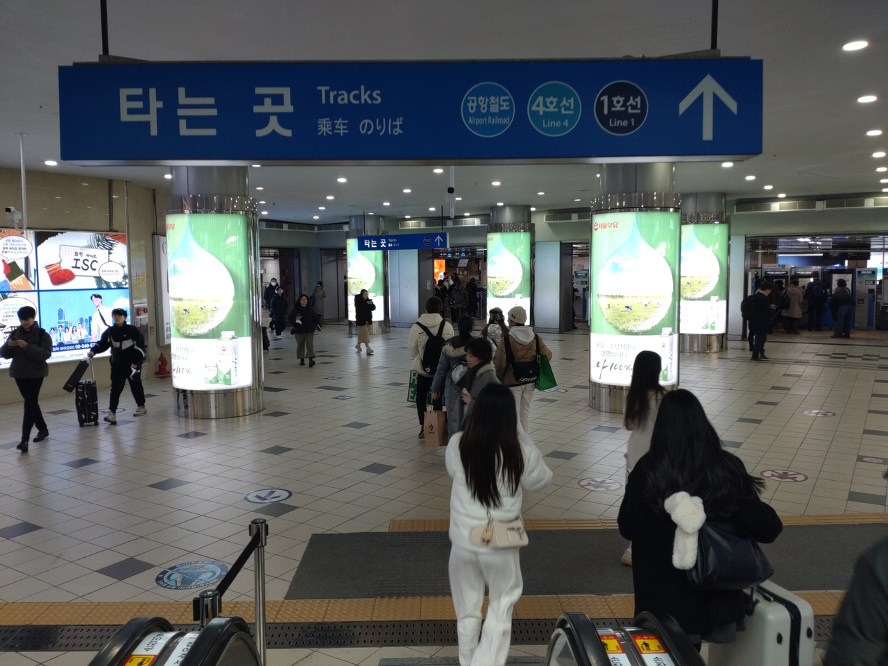 国鉄ソウル駅の地下にある地下鉄駅で1号線と4号線が乗り入れています。特に1号線は清涼里とソウルを結ぶメイン路線になっていま...  続きを読むす。かつては急行運転もあり、地上のホームから発着していましたが、今は廃止されています。1号線にはホームに売店もあり、ひと昔前の雰囲気です。