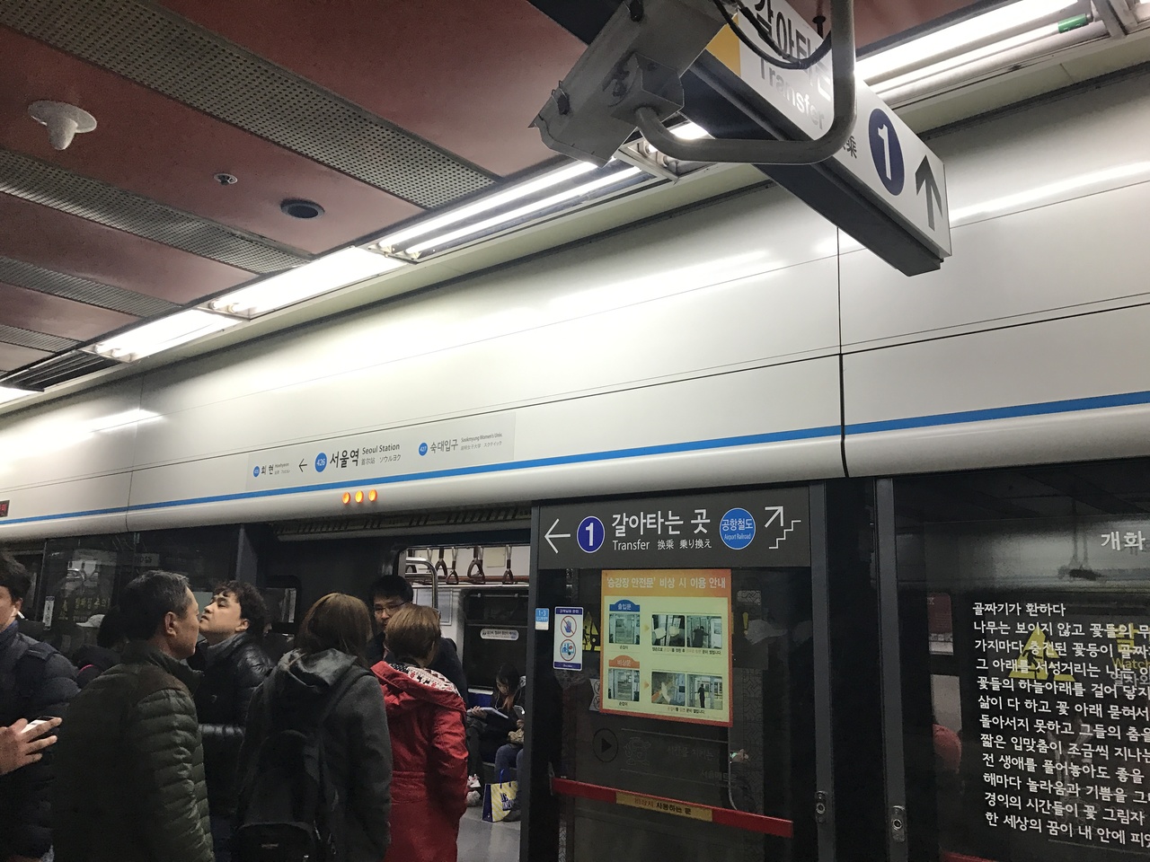 乗車するたびに小銭を出すのも面倒なので、交通カード(T−Money)を購入して乗車しました。シルバーシートには若い人はほと... 続きを読むんど座らないので、マナーも日本人より良いかと思います。また路線によっては車内アナウンスが日本語でも流れるので、ハングル文字がわからなくても安心です。ただ3年前に来た時は、漢字表記があった気がするのですが、社内の地下鉄マップにはハングル文字と駅のコード番号ぐらいで、プラスでアルファベットがあるくらいでした。ですので日本語ガイドブックの漢字表記だけ見ていますと、わからなくなりますので、駅のコード番号を目印にするといいと思います。 閉じる