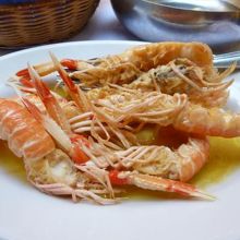 この店の名物はスカンピ(手長エビ)のガーリック蒸し。