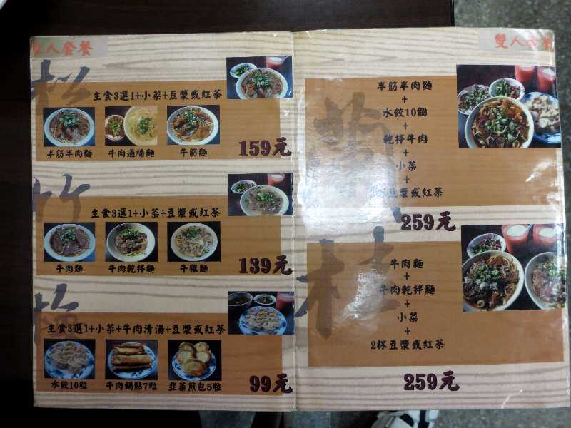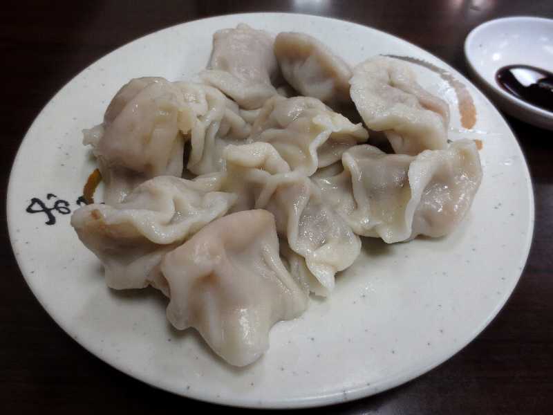 さて、ここからがレポートです。こちらの店にはそこそこ日本語のできる女性店員さんがいました。メニューを見ると牛肉麺のセット物が中心に載せられています。159元の牛肉麺セットは、牛肉麺三種の中から一つ選択、おかずの小皿から一つ選択、豆乳か紅茶から一つ選択、のセットでした。餃子は水餃子と鍋貼(焼餃子)があります。もちろん餃子も豚肉ではなく牛肉です。私は、牛肉餃子が珍しくて、単品で紅焼牛肉麺(120元)と鍋貼5個(1個8元)を注文しました。後日もう一度訪れて水餃子(10個60元)も食べました。
