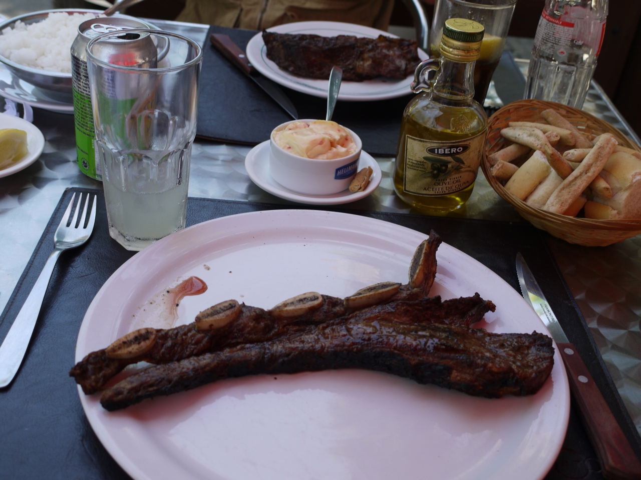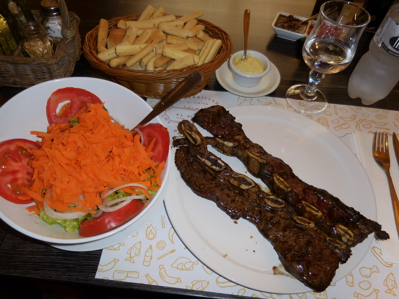 南米名物のアサードとフレッシュサラダ(とてもでかい)、炭酸水を注文