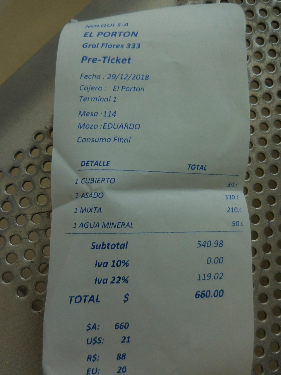 ウルグアイですが支払いはアルゼンチンペソ、ドル、ユーロ、ブラジルレアルが使えます しかも安い!