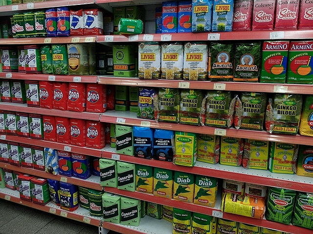 スーパー部門では、マテ茶の茶葉も目移りする位種類豊富でしたが、マテ茶用の茶器やボンビージャ(茶漉し兼ストロー)は、コロニア・デル・サクラメントの旧市街地にあるお土産屋さんの方がお勧めです。