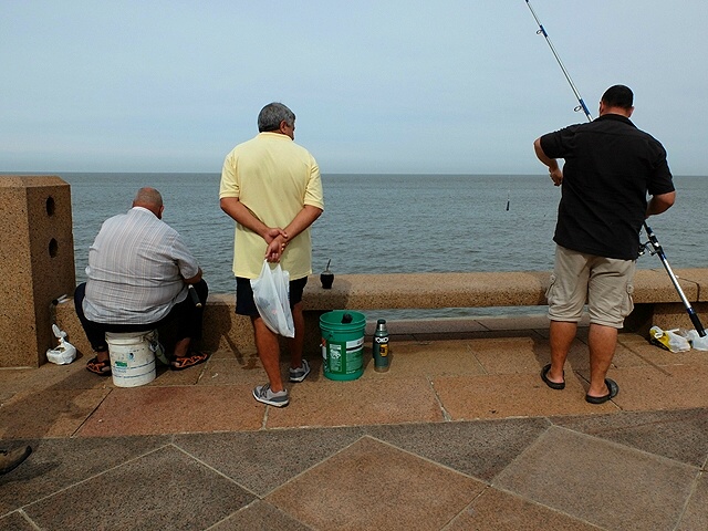 シウダー・ビエハ地区沿いの遊歩道は防波堤も兼ねた造りになっていて、散策やジョギングの人たちのほか、釣り客も多数。