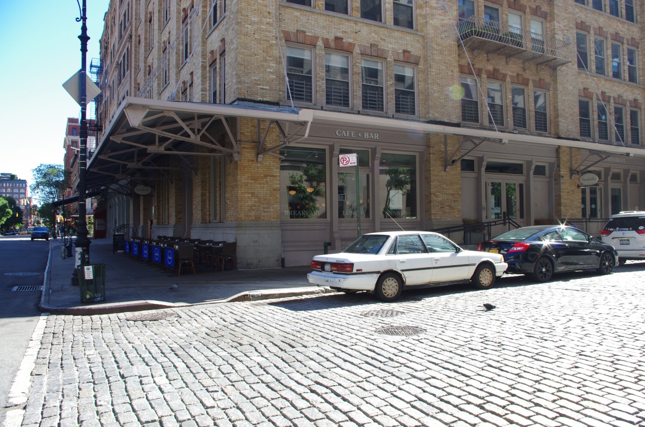 地下鉄駅から出てフランクリンストリートを西に向かい、途中ハドソンストリートを渡り、グリニッチ通りを曲がってちょっと行くとSarabeth`sの楕円の小さな看板を発見することができます。