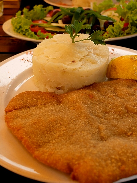 私たちはサラダ一つと南米版カツレツのミラネサ(MILANESA)をシェア。