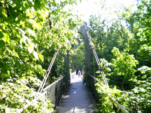 なぜわざわざクチコミを書いたのかというと,この吊橋を東へ渡った先にある広場が市内バス110番の終点だからである。この吊橋を街歩きの終着点にしておけば,最後はバスで一気に中心街へ戻るというワザを使うことができる。