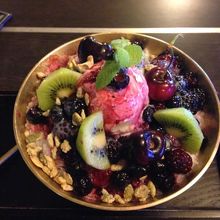 フルーツがどっさり乗ったピンスが真鍮の器で出てきました。