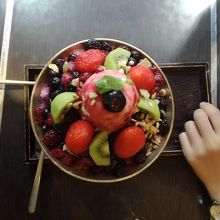 メニューを見るとワッフルなども美味しそうで迷ったのですが、初志貫徹、ベリーのピンスにしました。