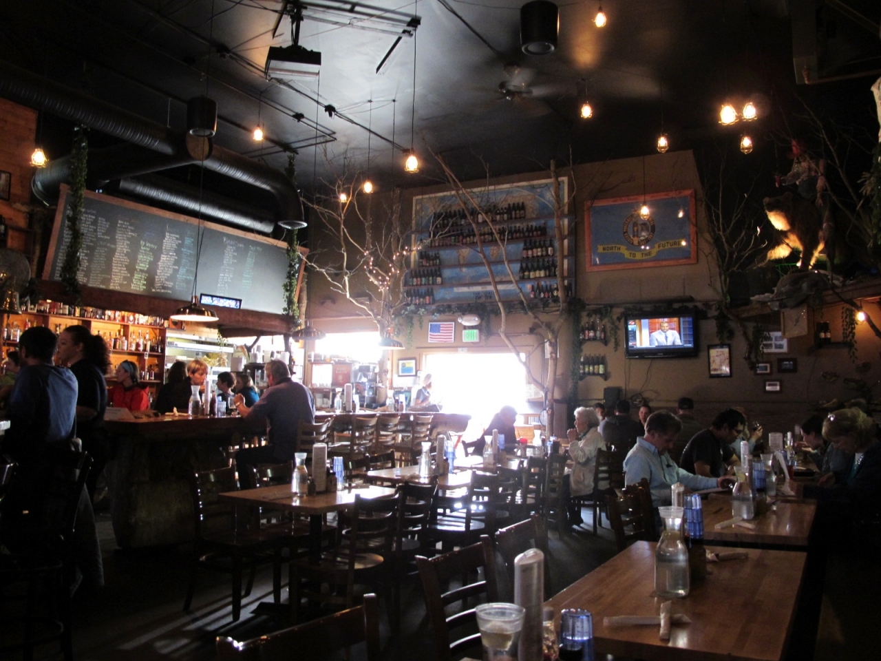 デナリ国立公園近郊のビール醸造所のあるレストラン、地ビールやアメリカ料理はアラスカの観光地にしてはリーズナブルです