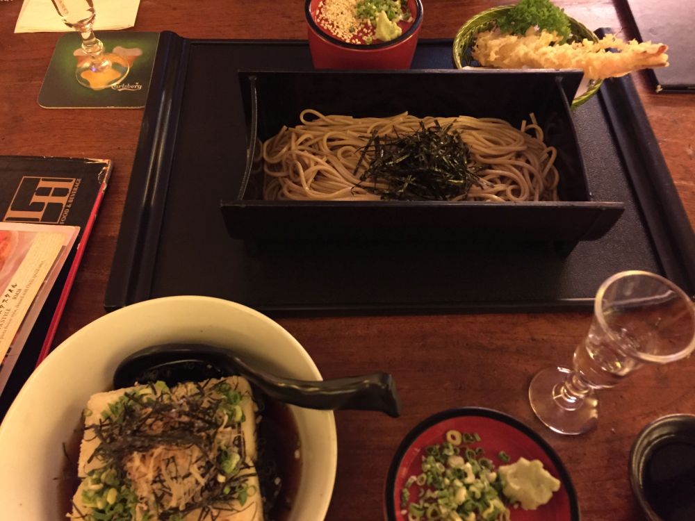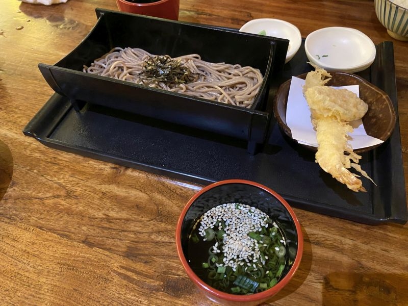 おそばが二種類盛り合わせてあるのはいいですが、ボソボソした食感。