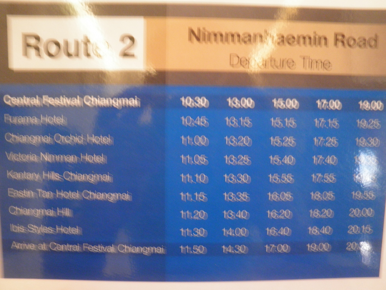 なお、2時間置きにチェンマイ市内の大きなホテルへの無料送迎バスが4系統運営されているので、上手く利用すればタダで行けます。 閉じる投稿日:2015/01/11