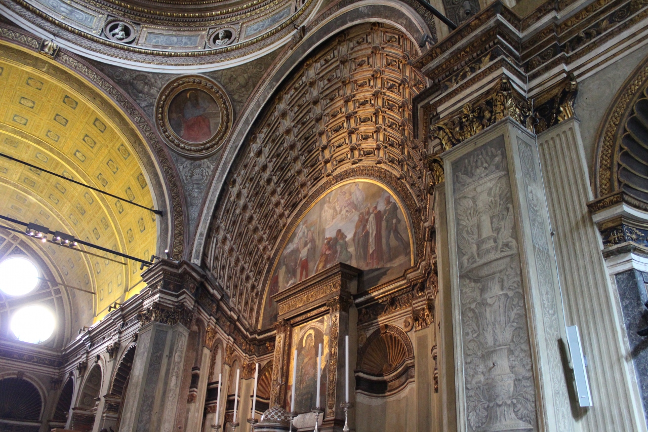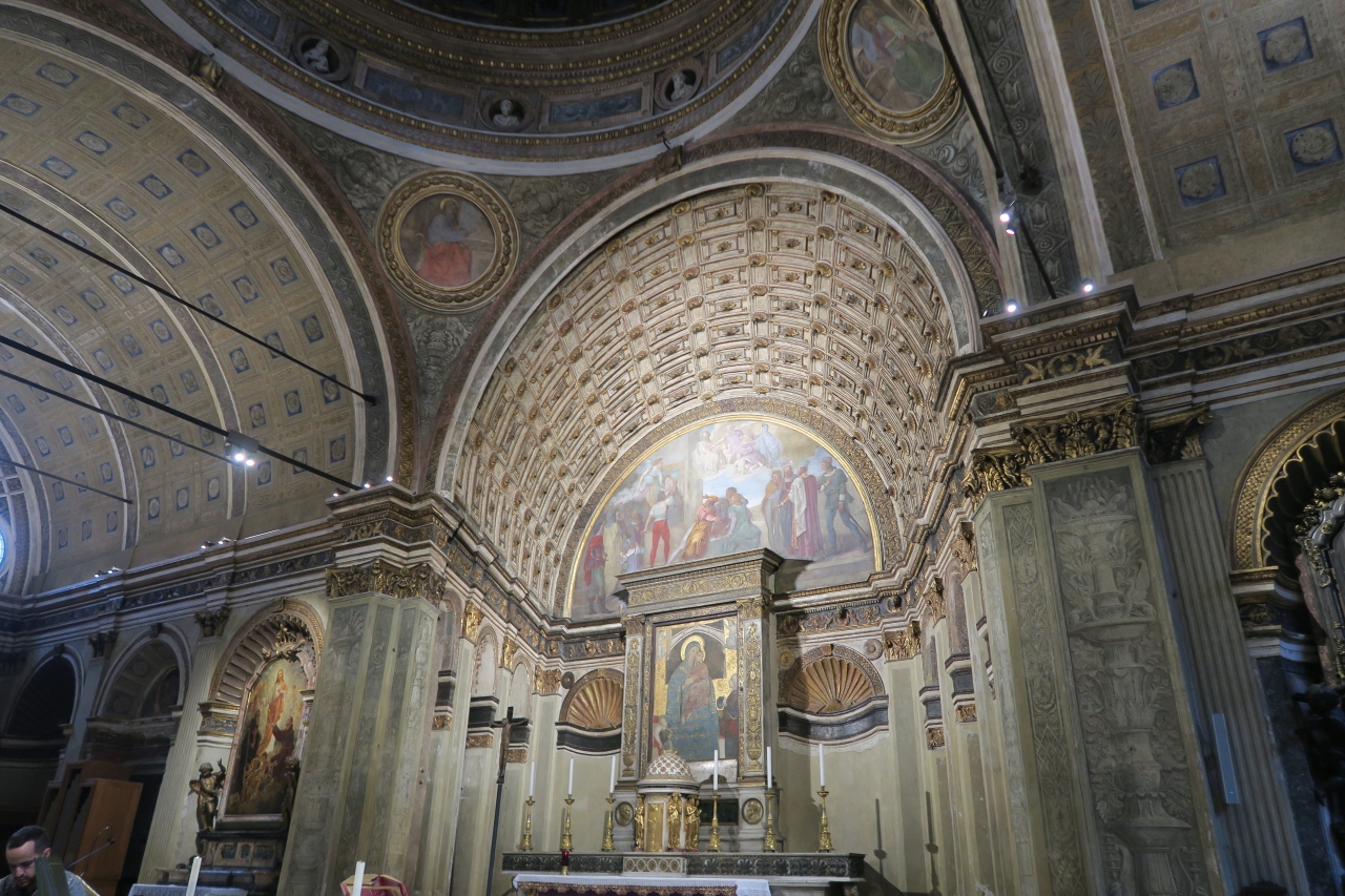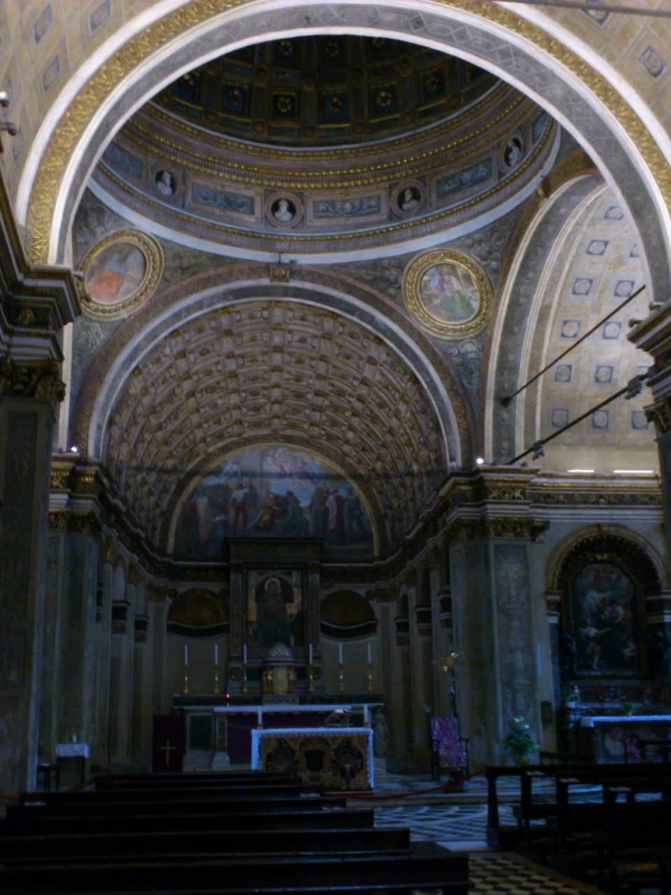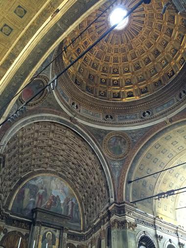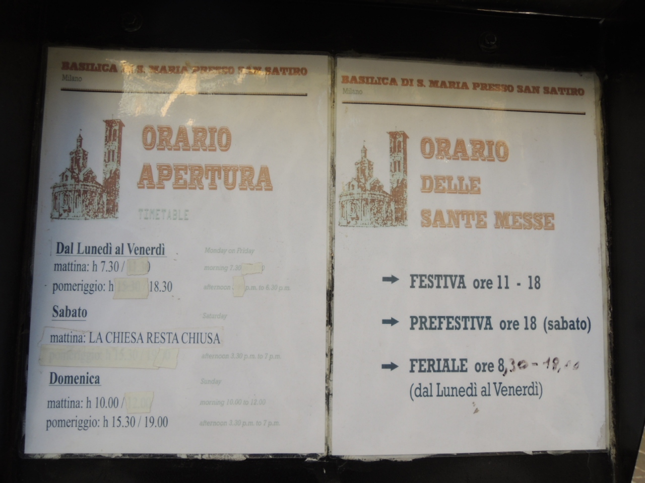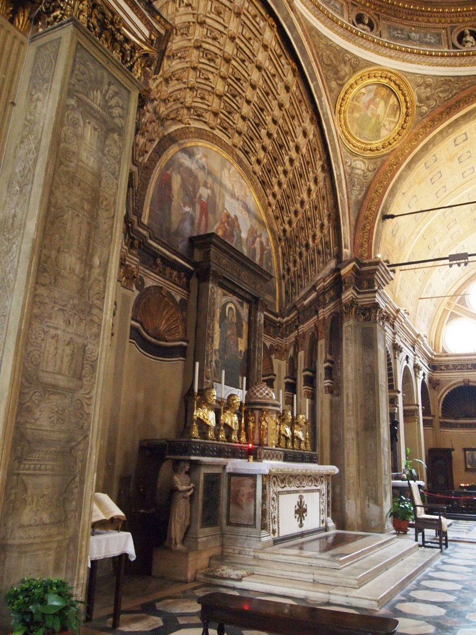 ドゥオーモから南に歩いて5分ほどの「サンタ・マリア・プレッソ・サン・サティロ教会」に行きました。ビルの間の路地奥にある小さ... 続きを読むな教会です。ファサードは思いのほか簡素ですが、初期ルネッサンスの宝石とも呼ばれる有名な教会で、熱心な信者が常にお祈りをしていました。