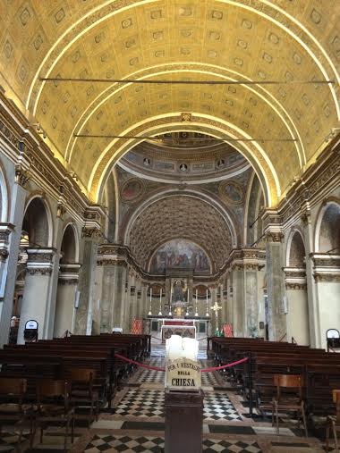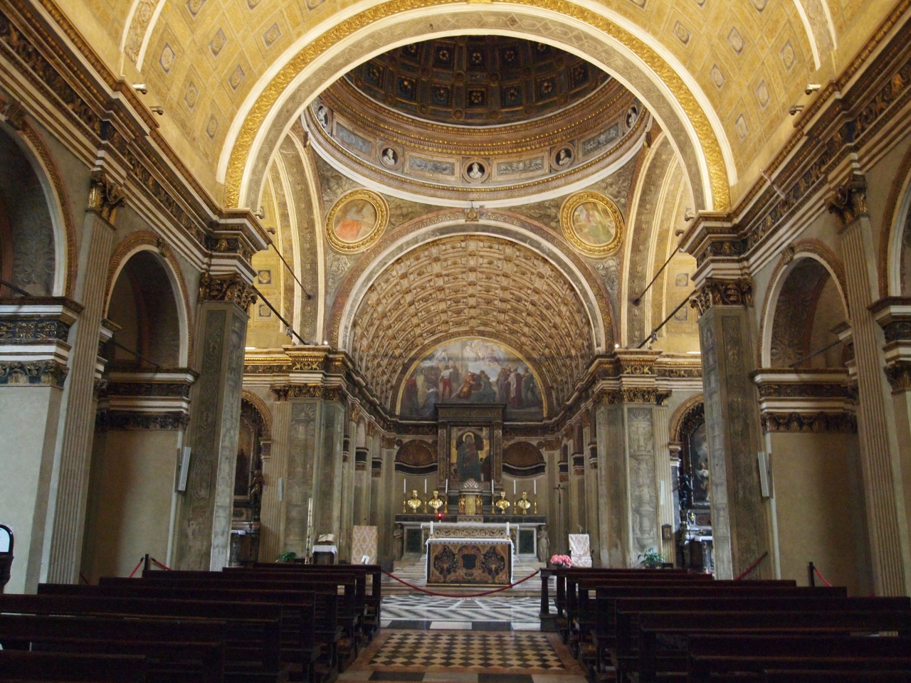 教会に入って驚いたのは中央祭壇です、奥行きがわずか80センチの祭壇なのです。正面からだと奥行きがあるように見えますが、近寄って見ると、周囲の装飾漆喰とアーチが極端な遠近法で描かれていることがわかります。目の錯覚を利用したトリックアートに脱帽です。内部は撮影禁止でお見せできないのが残念です。是非ご自分の目で確かめてください。 閉じる投稿日:2015/09/13