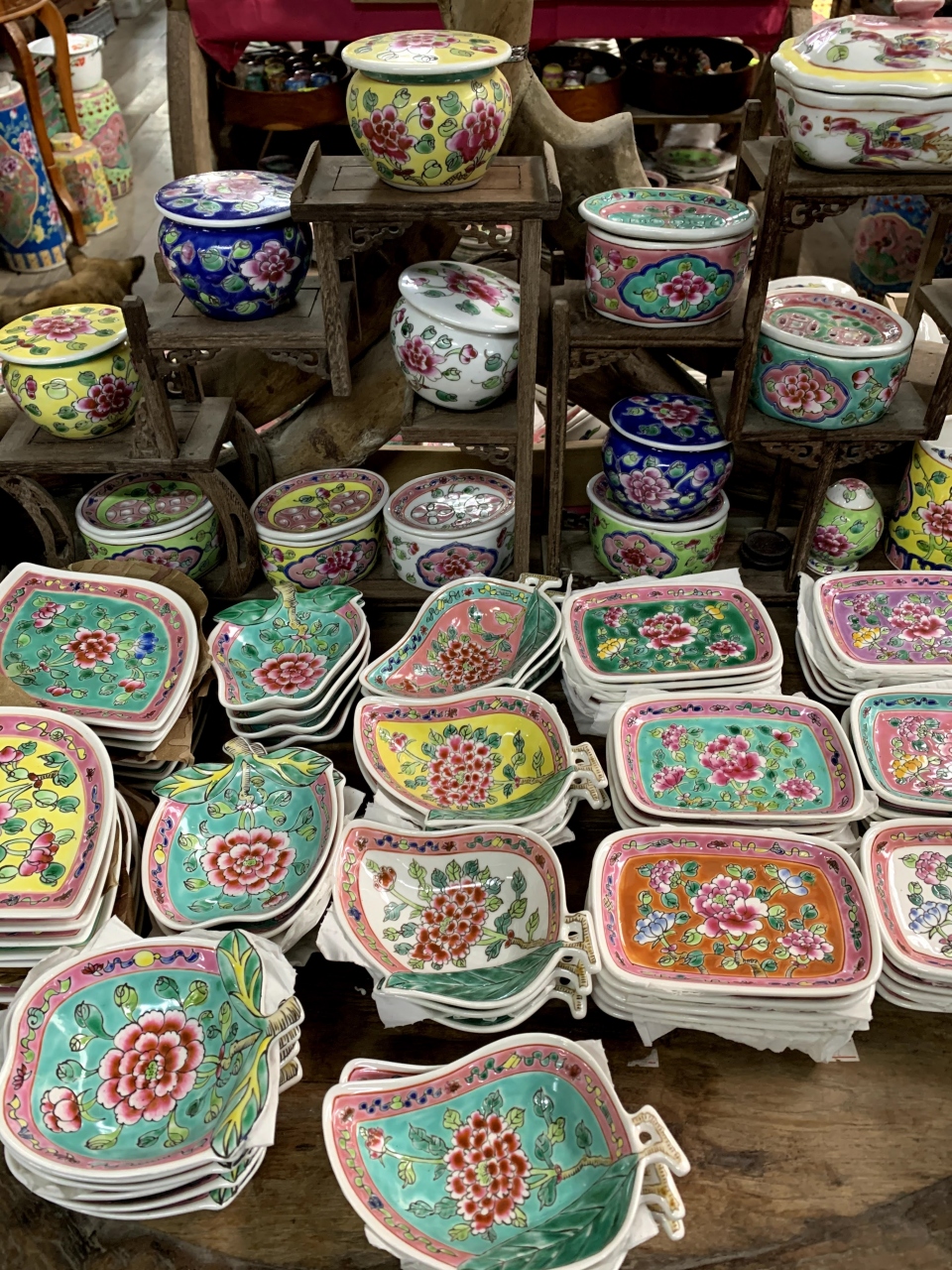 シンガポール市街にもプラナカン食器を扱うお店はありますが、品数が格段に多いのと値段が2~3割、高級なお店と比べた場合は5割くらいお安く買えます。