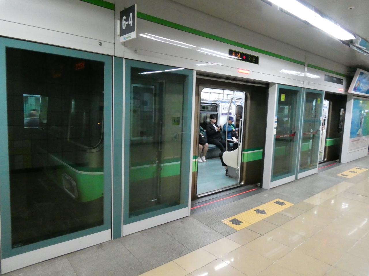 沙上駅にて、黄緑のラインの2号線は全面ガラスホームドア向こう
