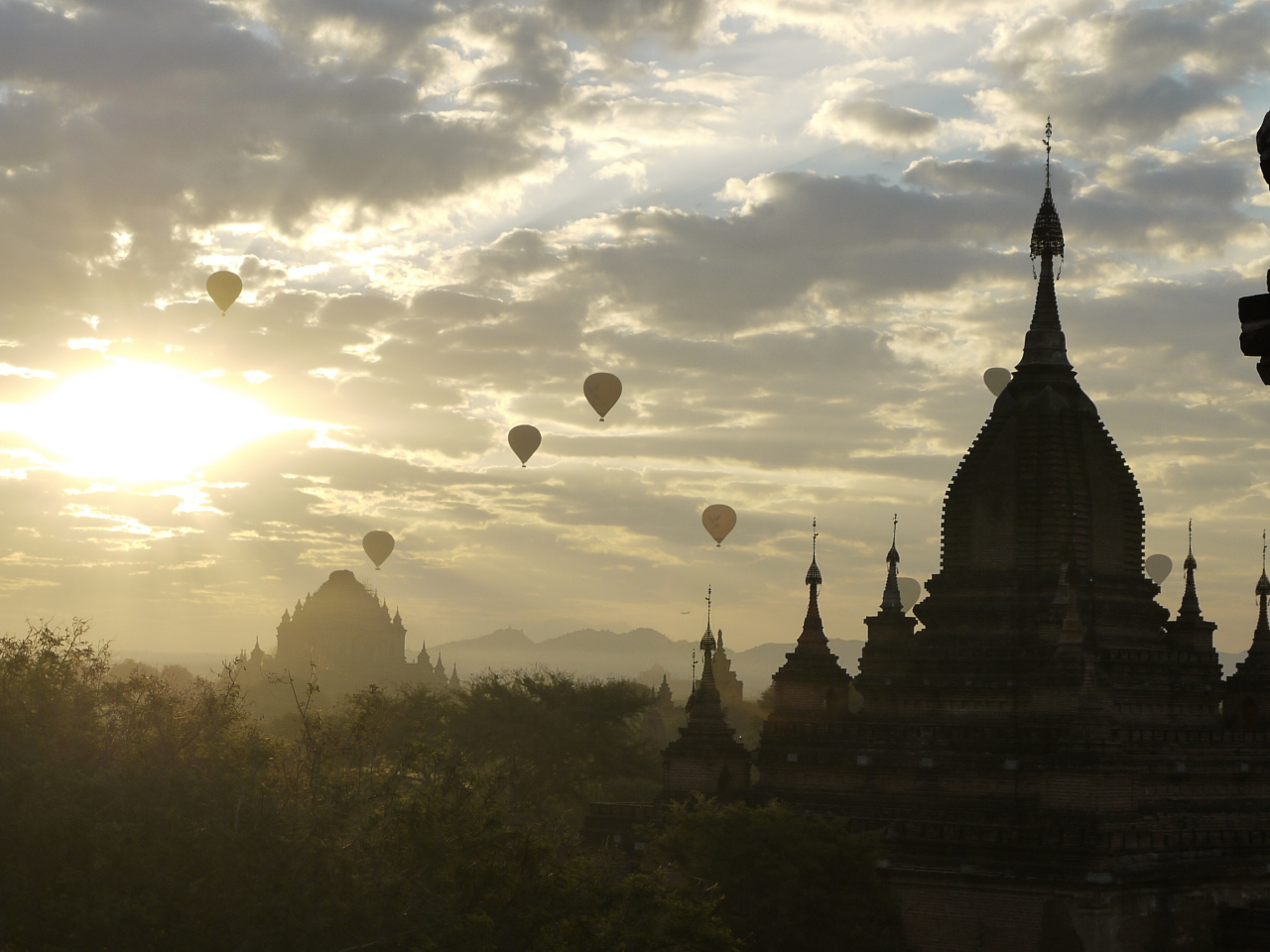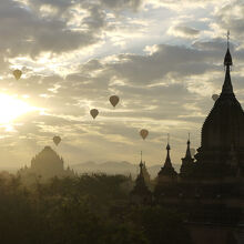 バガンでは朝日と夕日が美しい