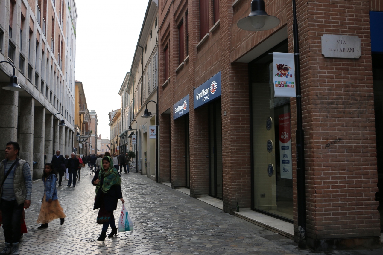 ちょっと場所がわかりづらいかもしれませんが、ラヴェンナ駅とポポロ広場を結ぶアルマンド・ディアス通り(Via Armando Diaz)からアリアーニ通り(Via degli Ariani)に入った先にあります。