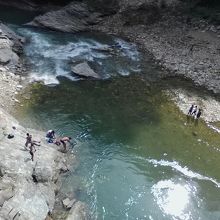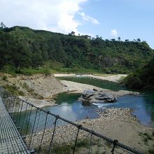 ①はAとBの2つの吊り橋を渡るお手軽なルート。何と言ってもBの吊り橋は圧巻、息を呑む高さと長さです。A周辺からは簡単に河原に下りられます。滝もあり泳げるので水着を持参した方がいいかも。週末はピクニックにやって来る人もちらほらいます。
