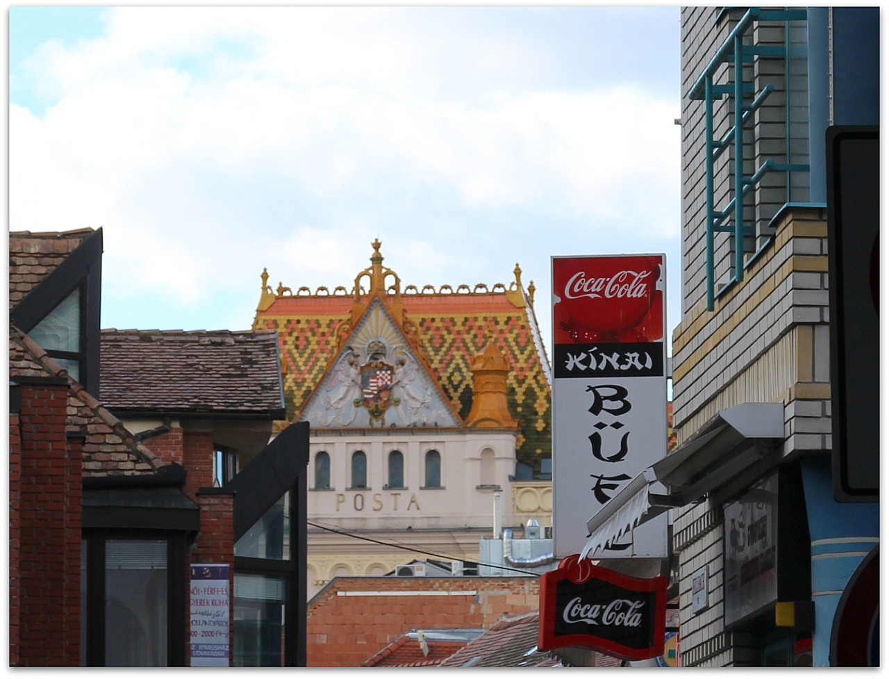 ジョルナイ焼きの屋根が目を惹く建物