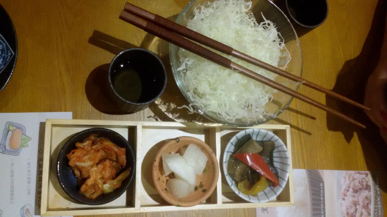 キャベツの千切りと漬物は、無くなったら追加してくれます