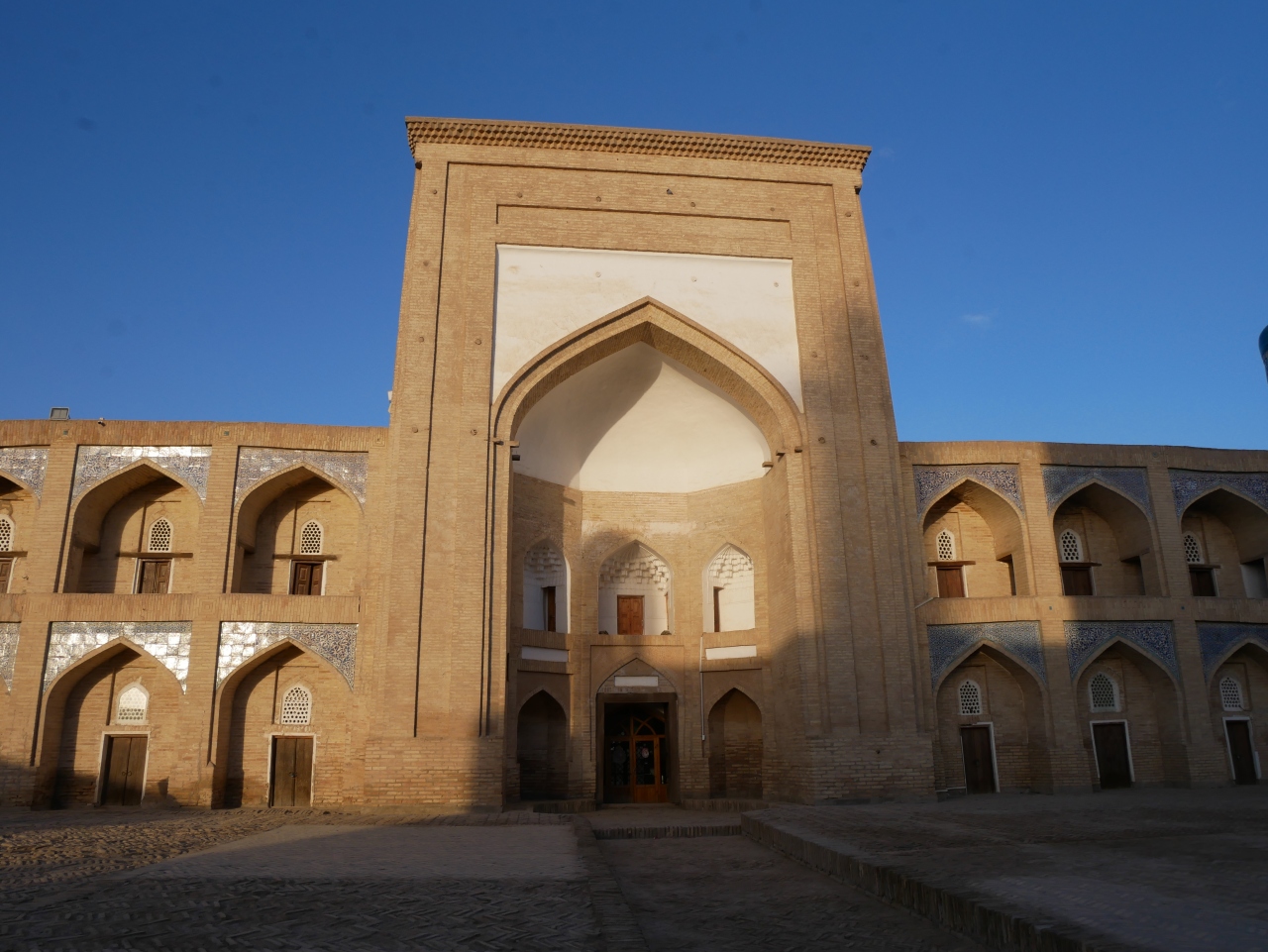 アラクリ・ハン・メドレセの入口には観光客に人気のホレズム・アート・レストランがあるので、まずその看板を見つけて敷地内に入ると、クトゥル・ムラド・イナク・メドレセもすぐ目の前に見えますよ。