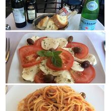 前菜は、無難なトマトとモッツァレラのカプレーゼ、メインはこちらのお店の名前がついたパスタにしました。