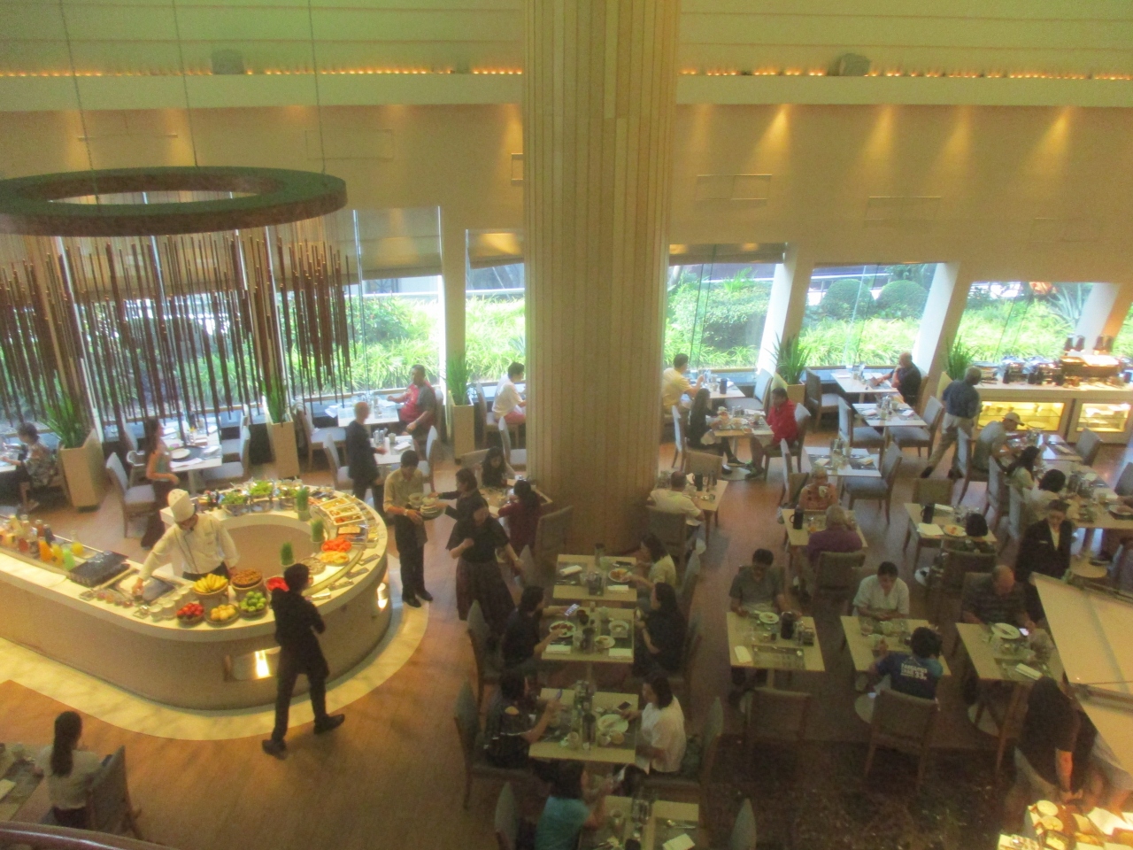 店内は吹き抜けの高い天井と窓に囲まれています