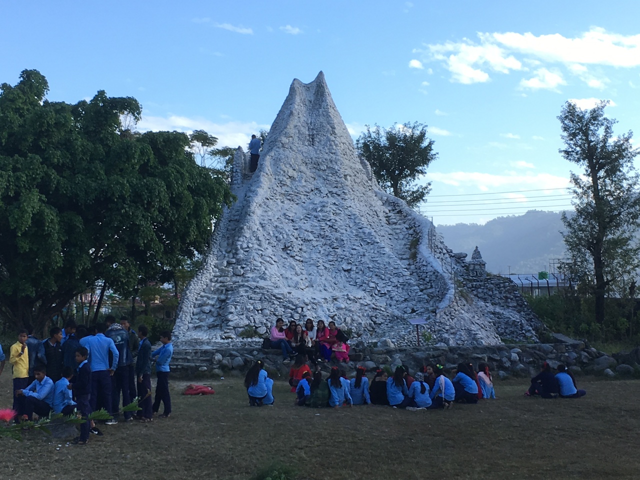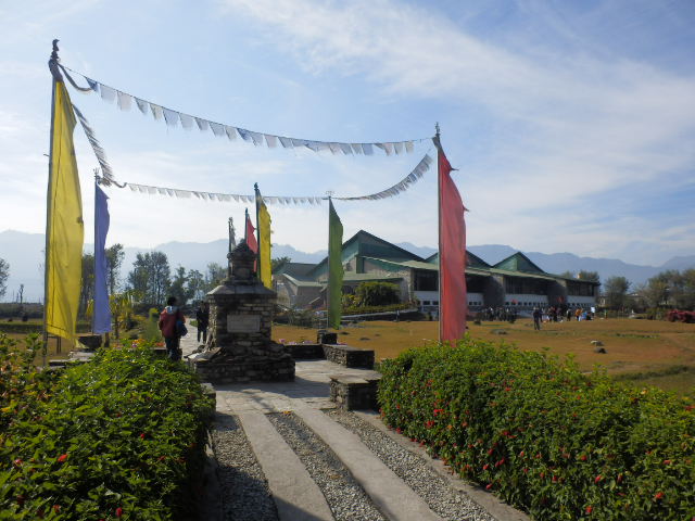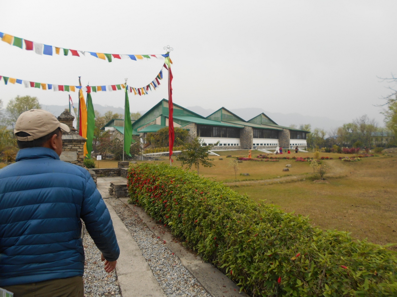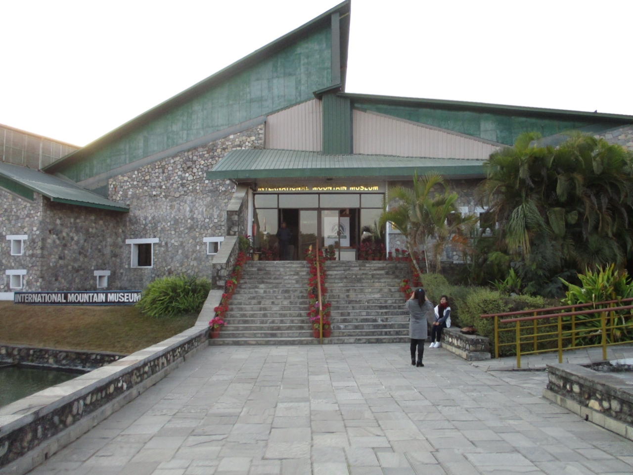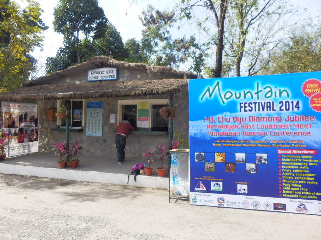 入口を入ってチケットを買うと、博物館までは珈琲などの木が植えられた並木道を歩き、人々が人工登攀壁に挑戦しているマナスルの双耳峰を模した模型の前に建物がありました。