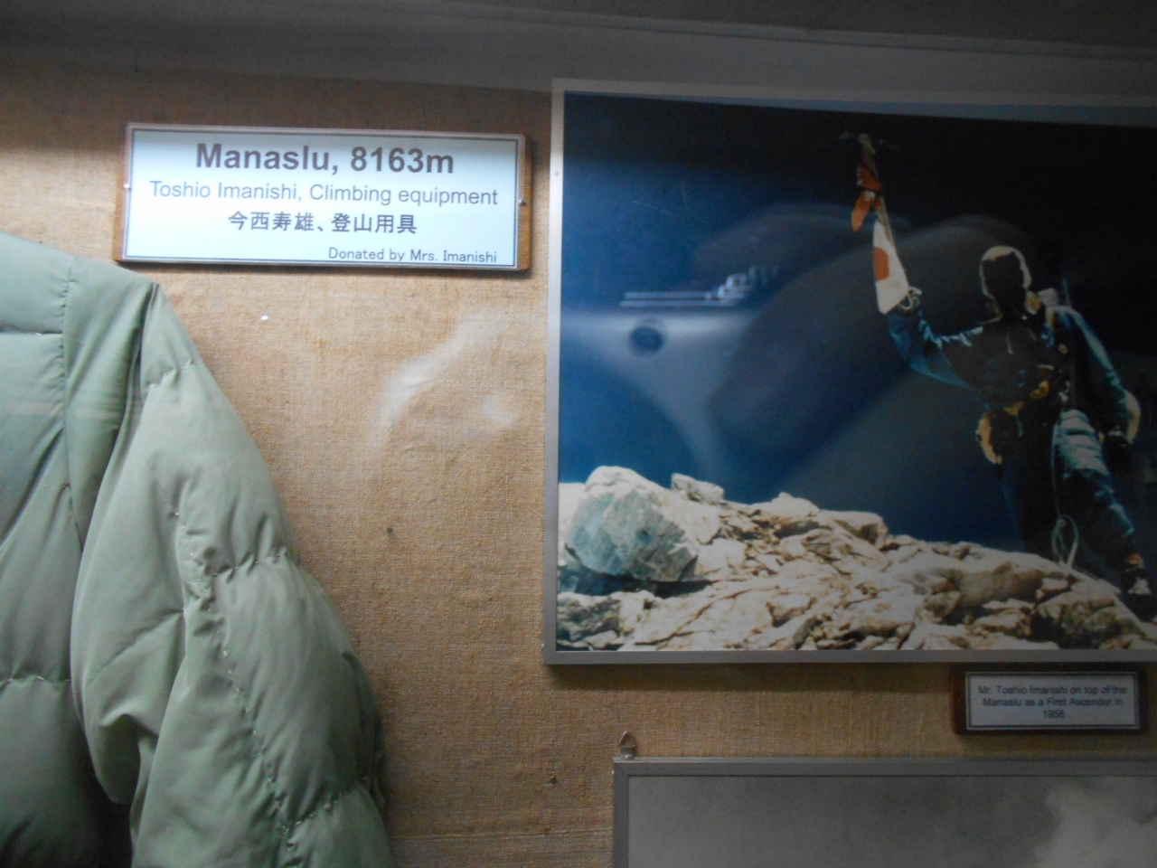 1956年(昭和31年)、当時はヒマ... 続きを読むラヤ山脈の未踏峰の一つであったマナスル8,163m(ダウラギリに次いで世界8位)を日本隊(槇有恒隊長)が初登頂に成功した写真や装備なども展示されている。