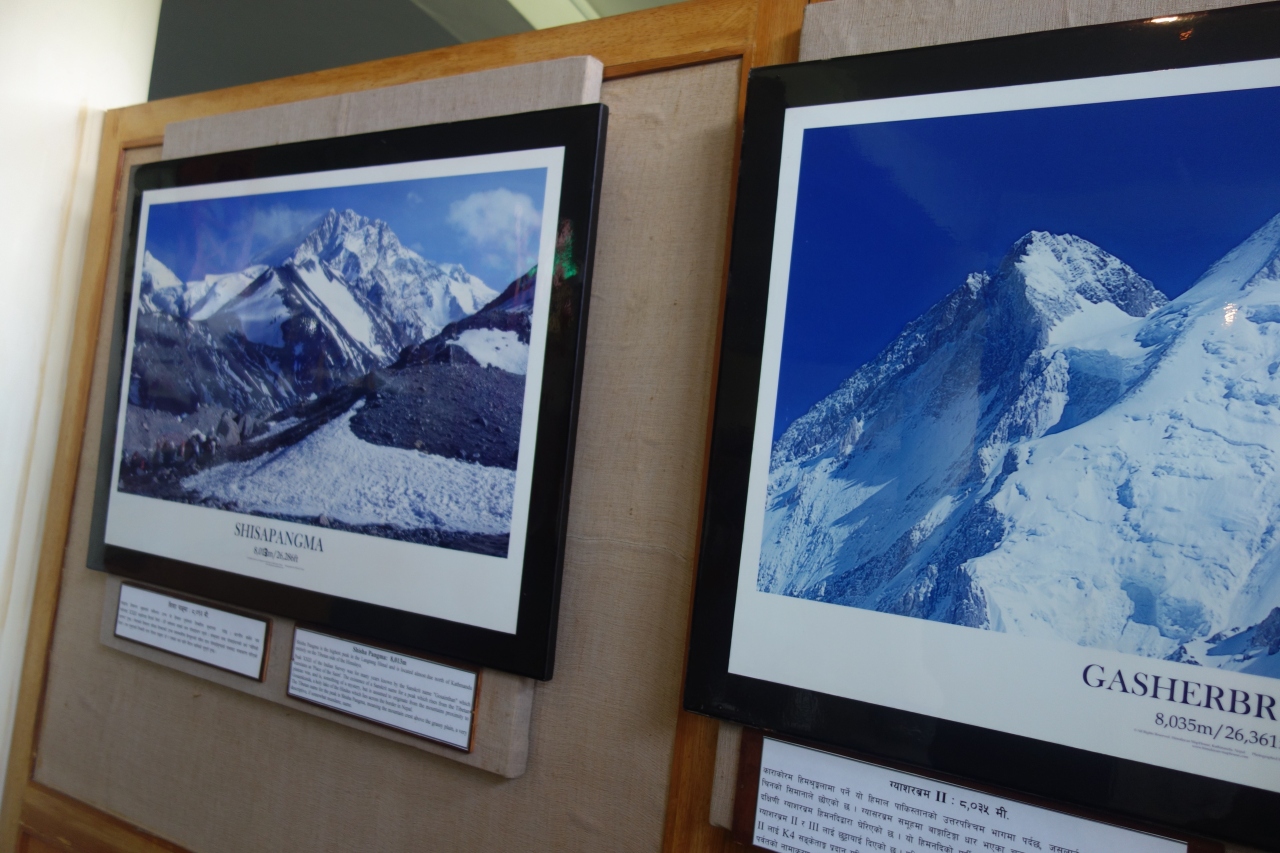 日本の山岳諸団体や個人の援助、各国の山岳関係者からの支援で2004年に完成したもので、登山関係では英国によるエベレスト遠征の1920年代から1953年の初登頂の写真や、フランス隊による人類初の8000m登頂の隊長モーリス・エルゾーグ寄贈の装備などがありました。