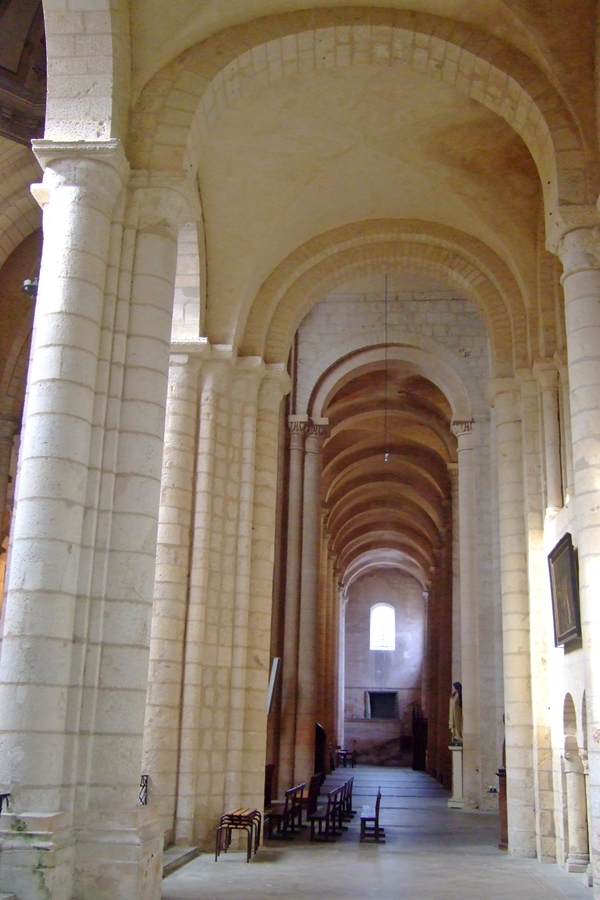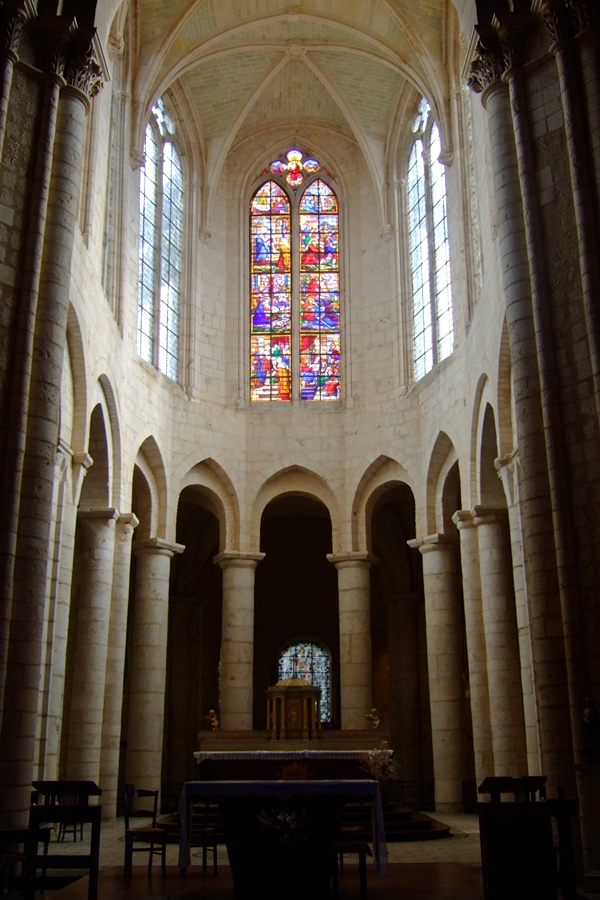 ポワチエは彩色の残る柱頭や壁画のある教会も多く、建築に使われている石の色のせいかほの暗いところも多いので、この教会に使われている白い石の明るさは新鮮に感じました。 気持ちよい空間でした。