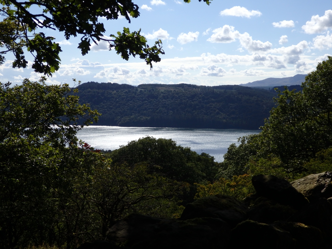 湖の反対側は山