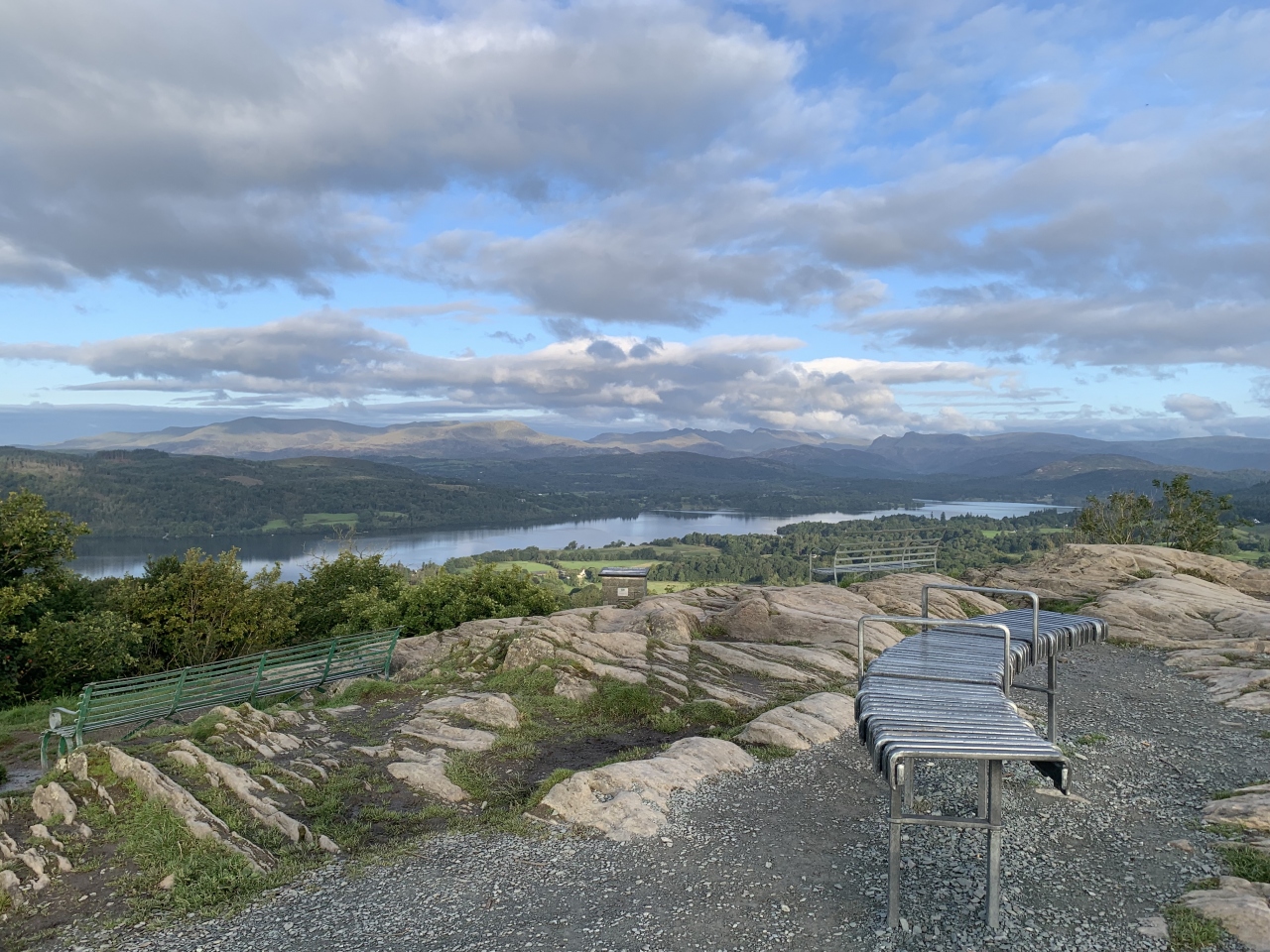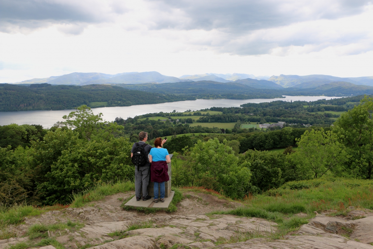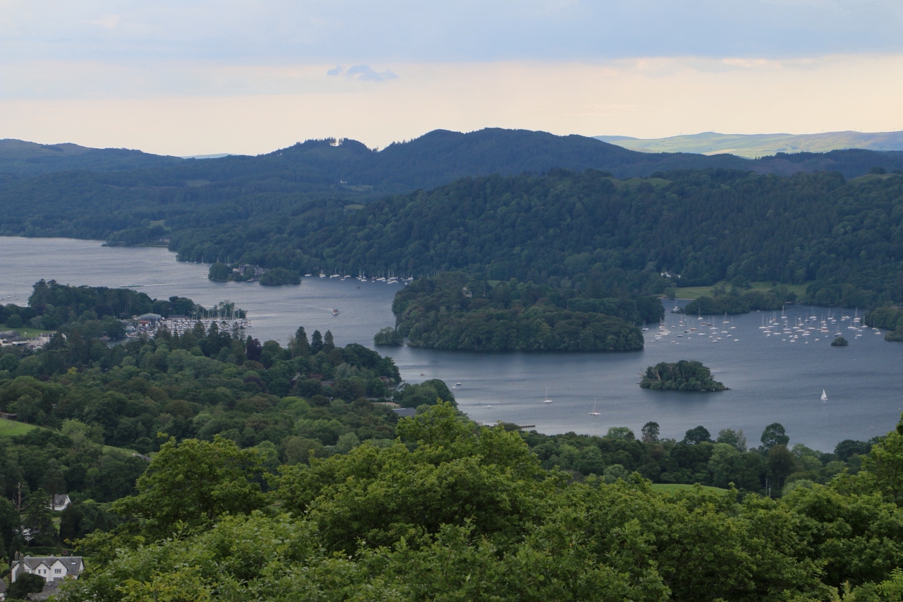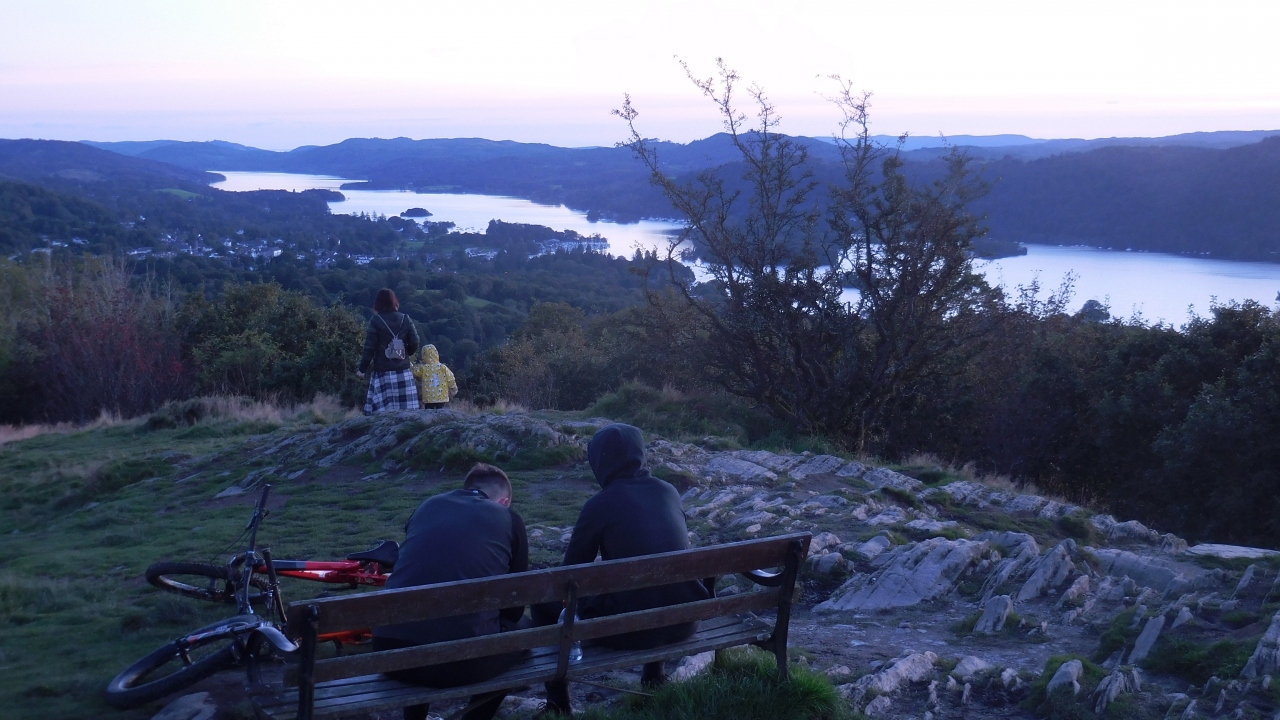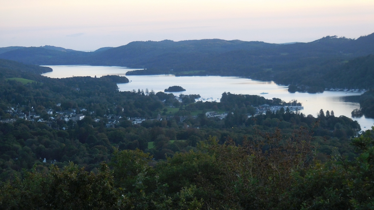 オレストヘッドから見た日没のウィンダミア湖