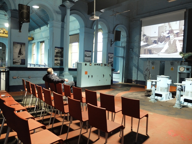 ポンプ室では、ビデオでタイタニック号建造の経過も見学できます