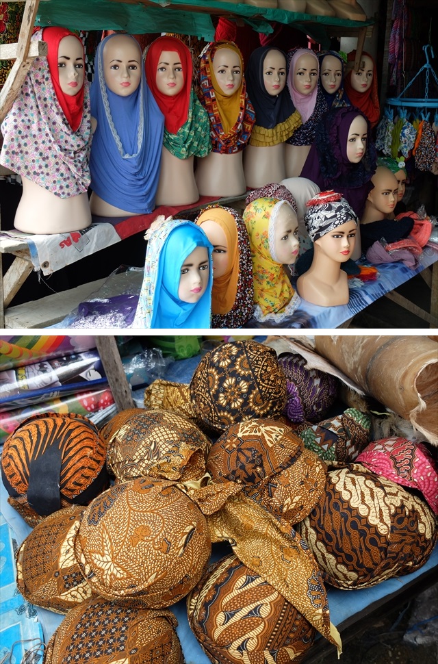 それでもよく見て行くと、イスラム帽子やバティック、籠製品、キッチュな絵柄のTシャツなどのお店も混じっていました。
