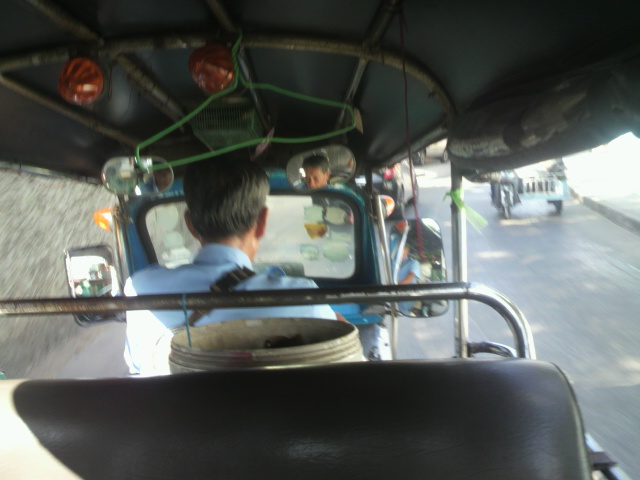 小雨の降る中、朝7時台に第2バスターミナルに行くため、ゲストハウスTOKYO HOTELが呼び止めてくれたトゥクトゥクを... 続きを読む利用。従業員に「40バーツ?」と聞くと、数秒熟考のち「60」と言われたので、素直に60バーツ支払った。事前に読んだWikitravelの英語サイトには、「コラートのトゥクトゥクドライバーは、パタヤやプーケットと違って値段をふっかけたりしない」と書いてあったので。