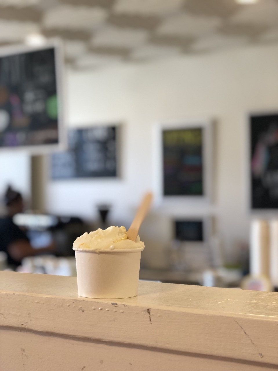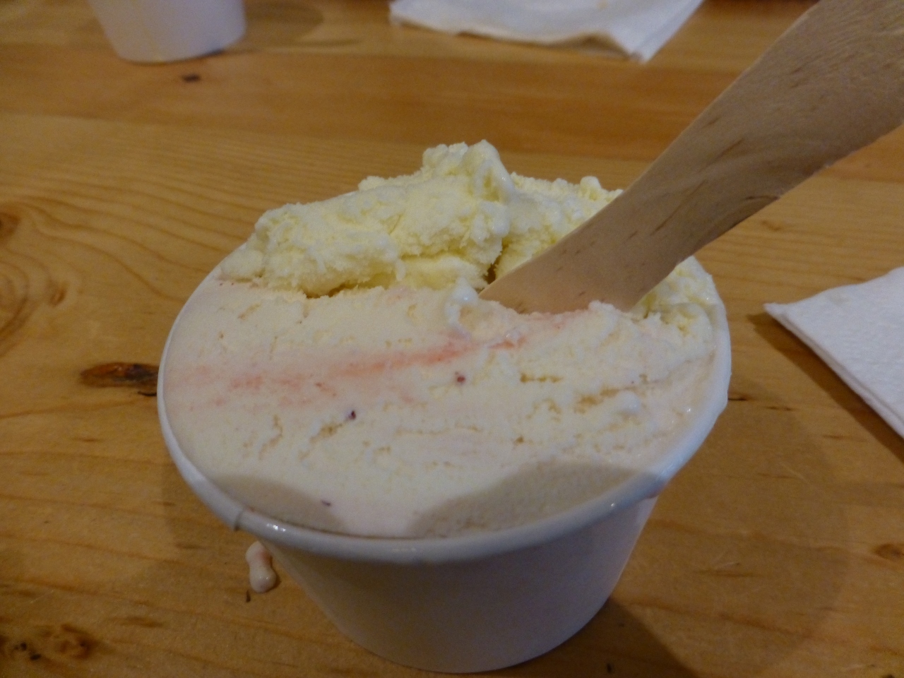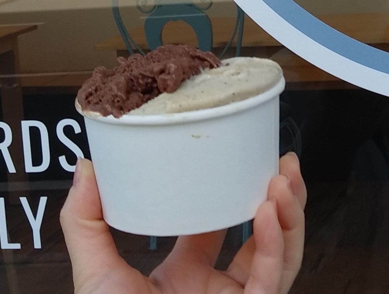 私はハウピアとミルクティを購入、甘すぎるアメリカンなアイスと違って、ちょうどよい甘さで美味しかったです。手焼きのワッフルコーンもこちらはちょっと甘く、日本の瓦せんべいのようなお味ですが、手作り感があって美味しい。