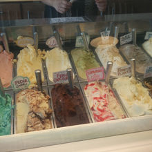 小さなお店はローカルのお客さんでいっぱい、お店の前も数人いました。テイスティングさせてもらって。2種類選びます。胡麻や抹茶、梅など和風のテイストも。