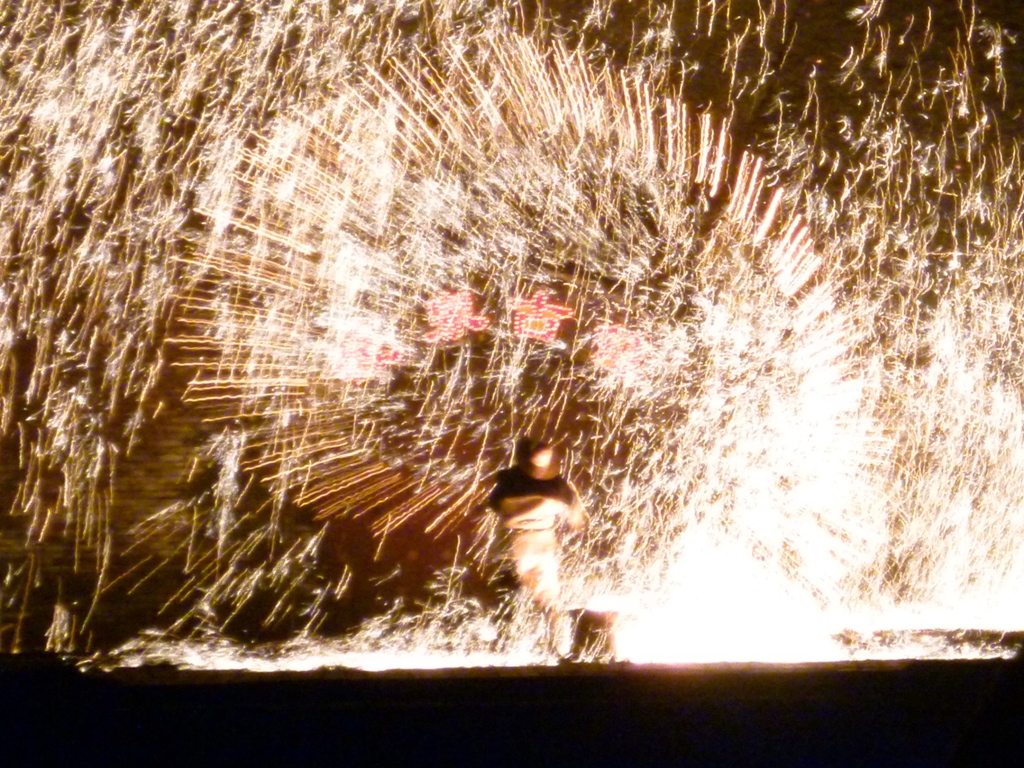 北京から八達嶺長城を越え高速道を西へ約5~6時間走り張家口・蔚県にある「暖泉古鎮」に到着です。ちょうちんで飾付をした通りの... 続きを読むちょっと入った一角に劇場があり、ここで年に1回、旧正月にこの花火の祭典「打樹花」(ダーシュファー)は行われます。始まりは「花火が高級品で金持ちだけが楽しめる娯楽だった頃、村の鉄工職人が液体鉄を建物の壁に向かってまいたところ見事に美しい花となった」ことが始まりのようです。日本でもTV番組で紹介されましたね。気温は氷点下10℃以下でしょう。寒さを忘れるくらい感激しました。近くには土やレンガ造りの集落「西古堡」があり日本にない光景を堪能できました。 閉じる