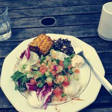ベジタリアンのビュッフェで、なかなか食べられない野菜が沢山食べられました!滞在中、節約で食事がスーパーで買ったパンとかスープになることも多く、野菜不足だったので、大変助かりました。笑 あとオーガニックの飲物が充実してました!(ヨギティーなど、良いハーブティーがドリンクバーにあった)