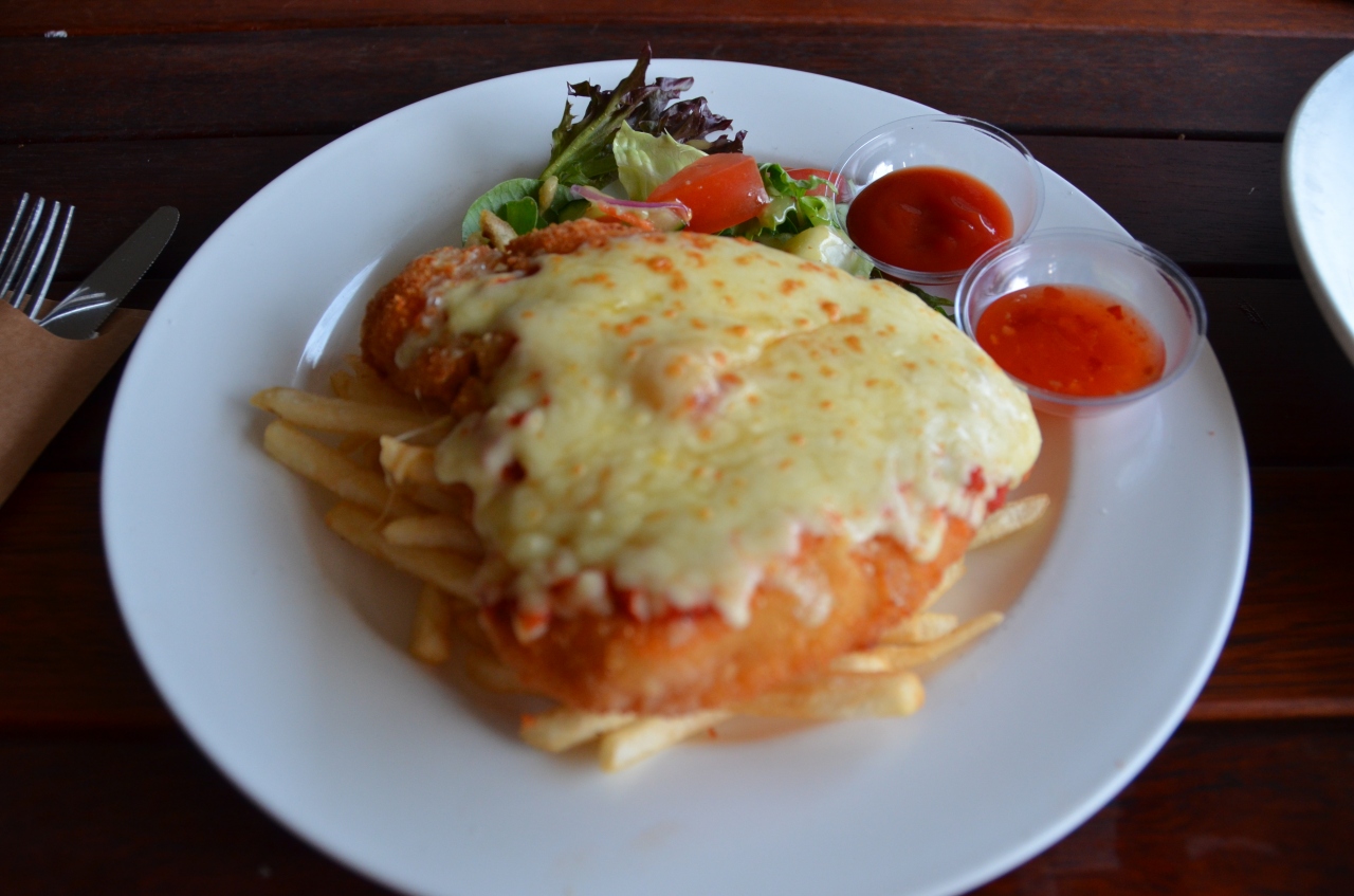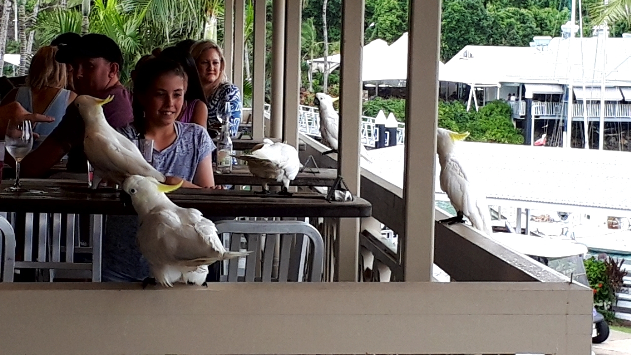 シャトルバスgreenラインで、街の中心アイスクリーム屋さんから約5分。マリーナの外れにある、テラス席が開放的なパブです。... 続きを読むランチタイムは、小さい子供連れの家族でも利用しやすいカジュアルな雰囲気でした。メニューはボリュームたっぷりのチキンバーガーA$22、ステーキA$29、ビールA$6.5など。野生のオウムcockatooがテラス席にたくさんいます。見た目が可愛いので、フェンスにおとなしく止まっている間は観光客も喜んで写真を撮りまくっていましたが、一羽がテーブルに乗り込み、客の皿からポテトを強奪すると、仲間同士でポテトの奪い合いが勃発するわ、店員さんはコップの残り水をビシャッと撒いて追い出しにかかるわ、てんやわんやでした(笑) 閉じる