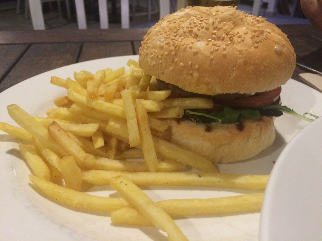 オーストラリアの料理、どれも一皿の量が多いので、二人でサラダとハンバーガーを頼みましたが、それでおなか一杯です。