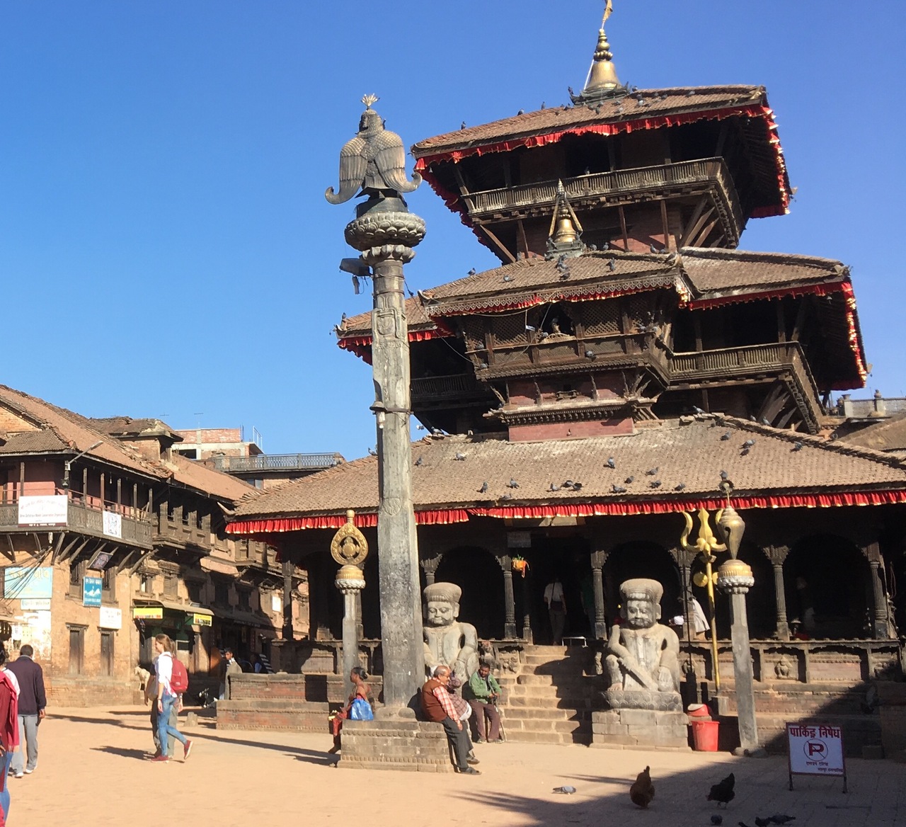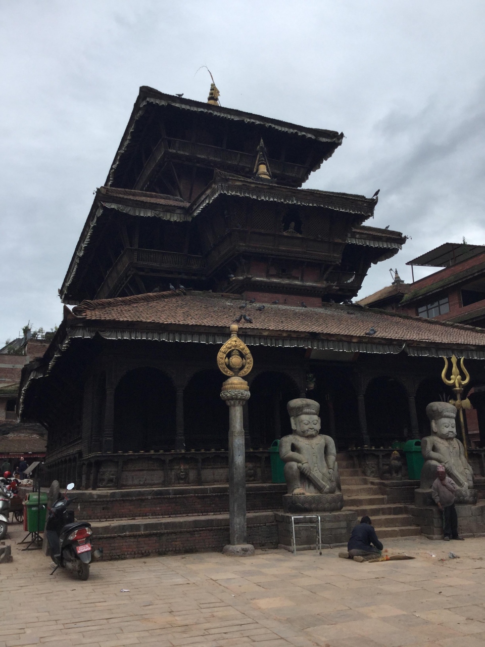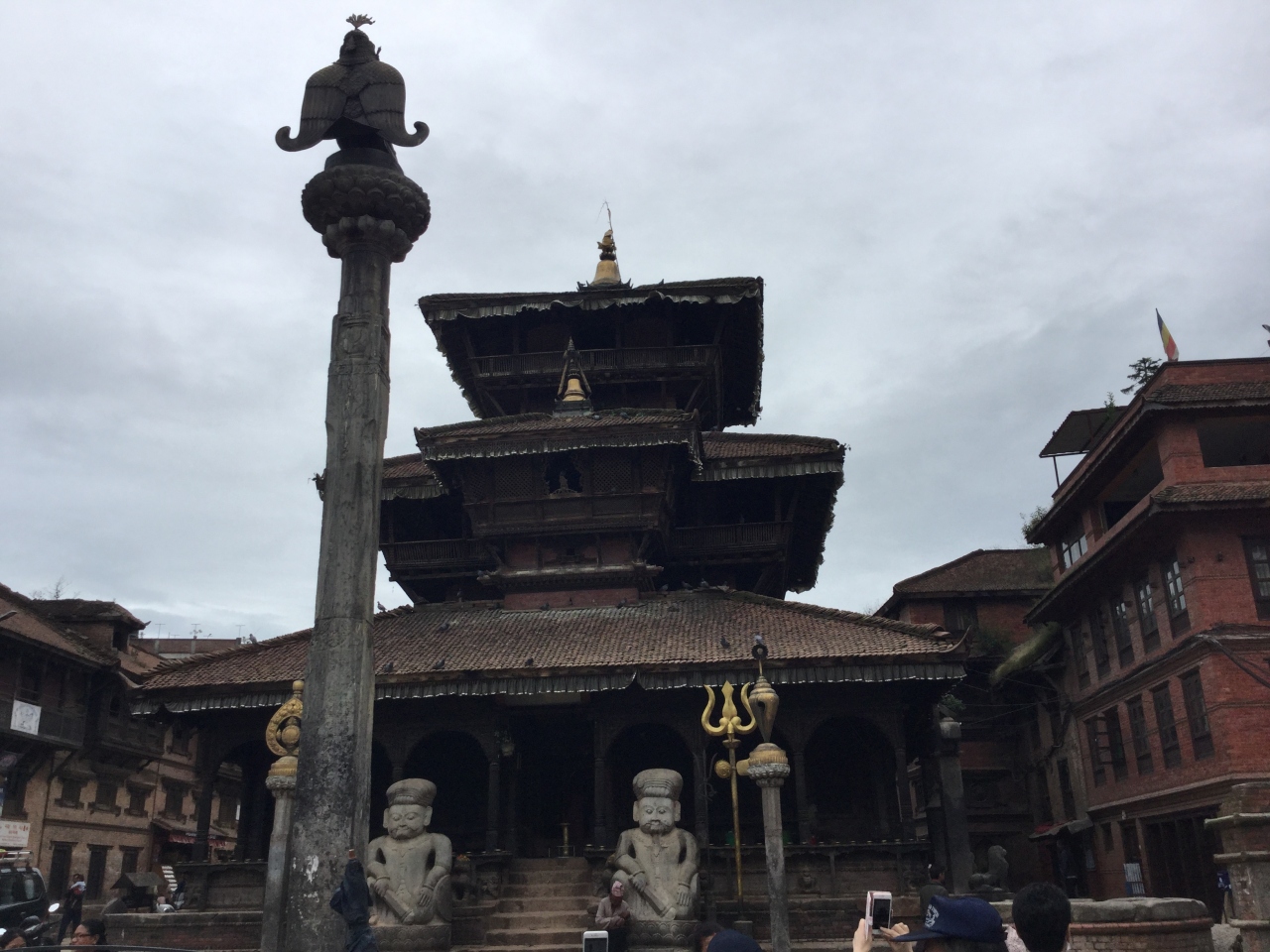 カトマンズの東方約12kmにある古都バクタプルのタチュパル広場に建つ1427年建立の木造寺院です。