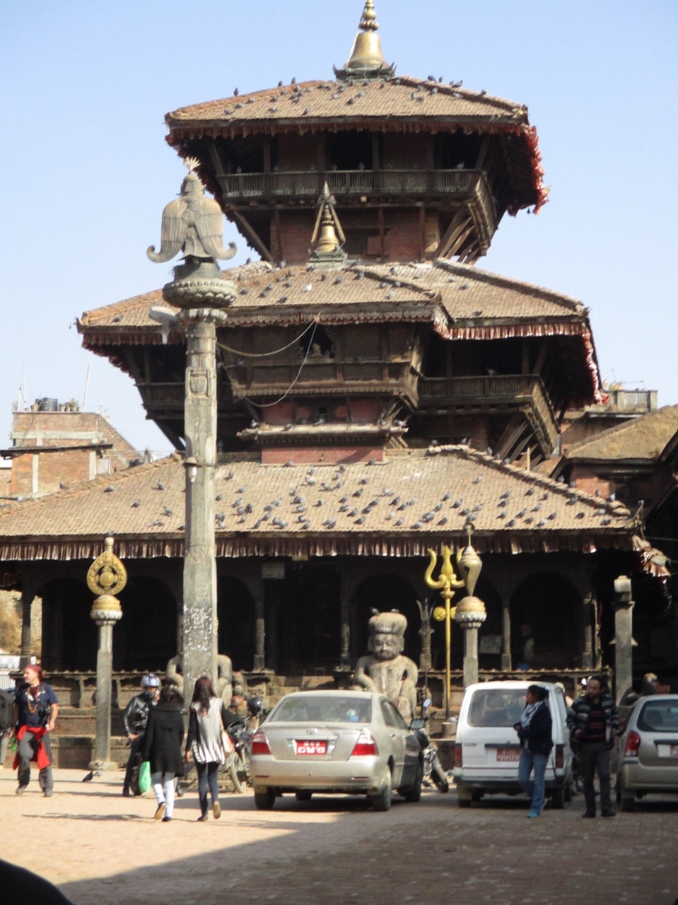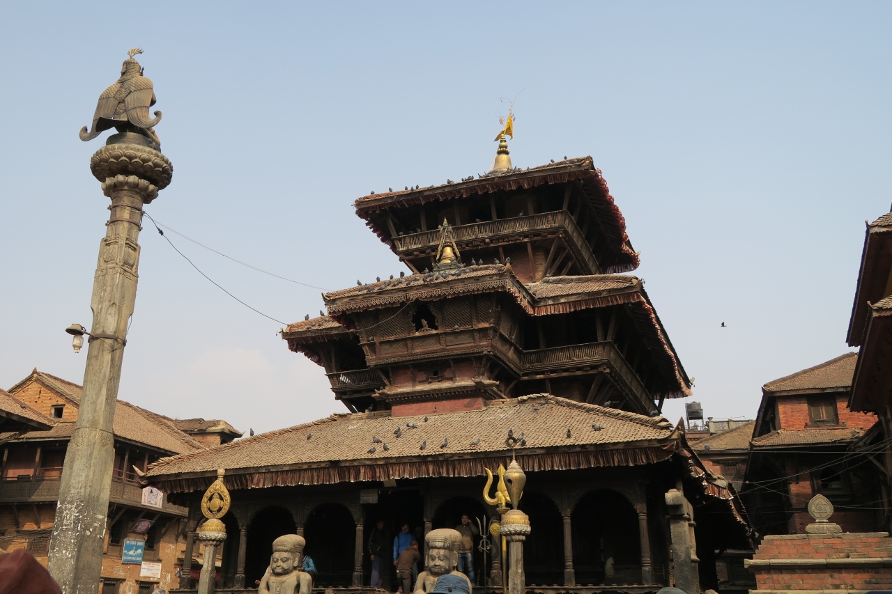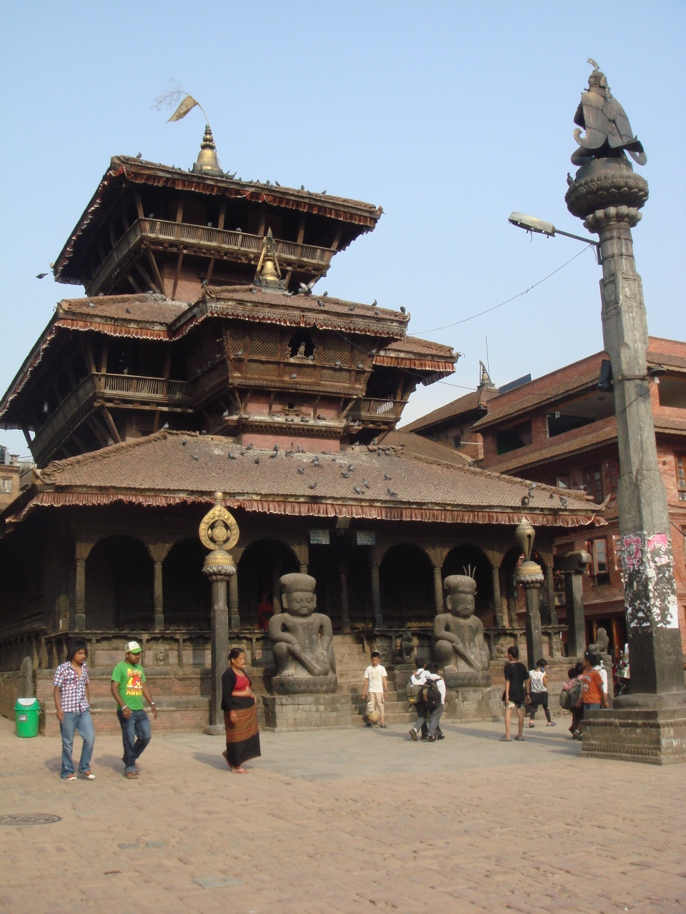 カトマンズの東方約12kmにある古都バクタプルのタチュパル広場に建つ1427年建立の木造寺院です。