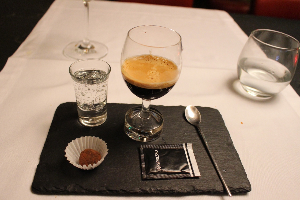 スターター、メイン、ワイン1杯、ミネラルウォーター、デザート、エスプレッソで51ユーロでした。