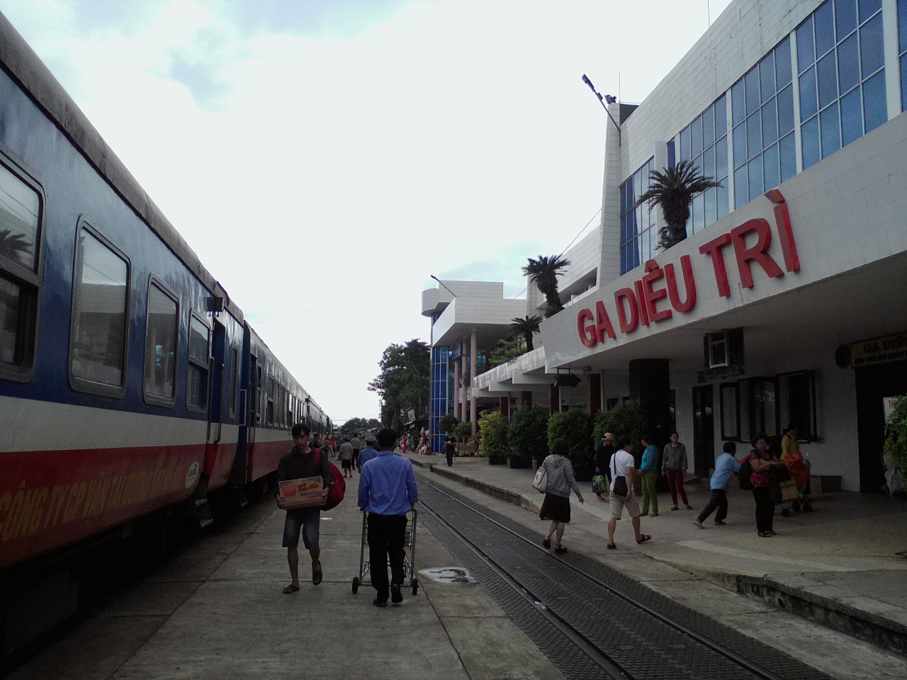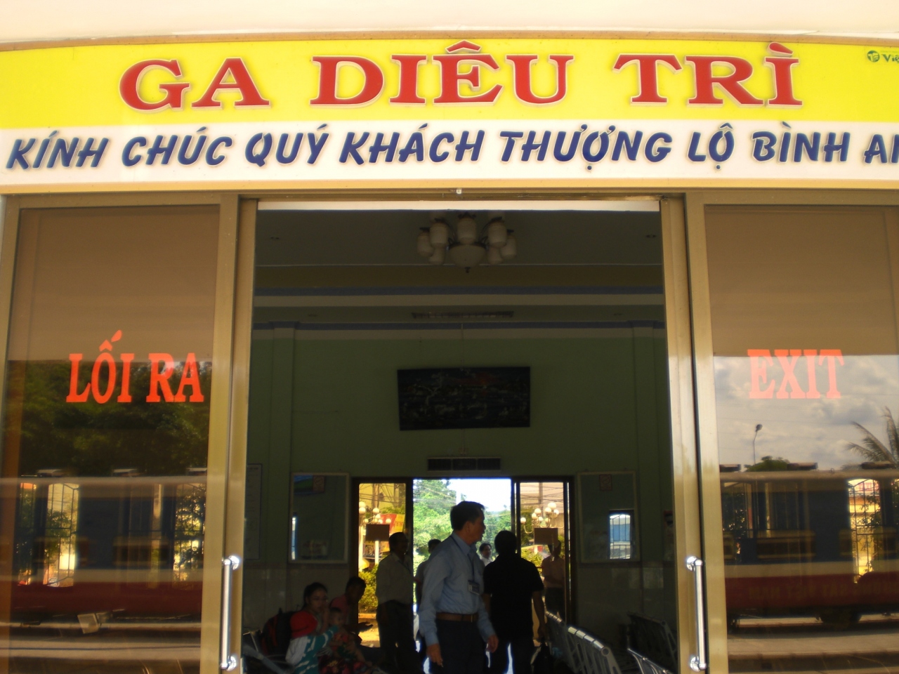 ディウトリという名前で登録されていますが実際の発音はディウチーに近いです。ハノイとホーチミンを結ぶ本線上にあり、クイニョン... 続きを読むに行く場合に乗り換えとなる駅です。ディウチーからクイニョンまでは約10kmの支線が走っています。ディウチー発クイニョン行きの列車は1日1本、SQN2(11:10→11:35)しかありません。「歩き方」にはローカル列車が走っているとの記載がありましたが(最新号は不明)、現在は走っていません。このSQN2はホーチミン→クイニョンの直通列車でこの列車ならディウチー駅での乗り換えは不要です。残念ながらハノイ方面からクイニョンまでの直通列車はありません。ちなみにですがクイニョン発ディウチー行きの列車も1日1本しかなくSQN2が折り返し運転するホーチミン行のSQN1(14:35→15:00)のみです。