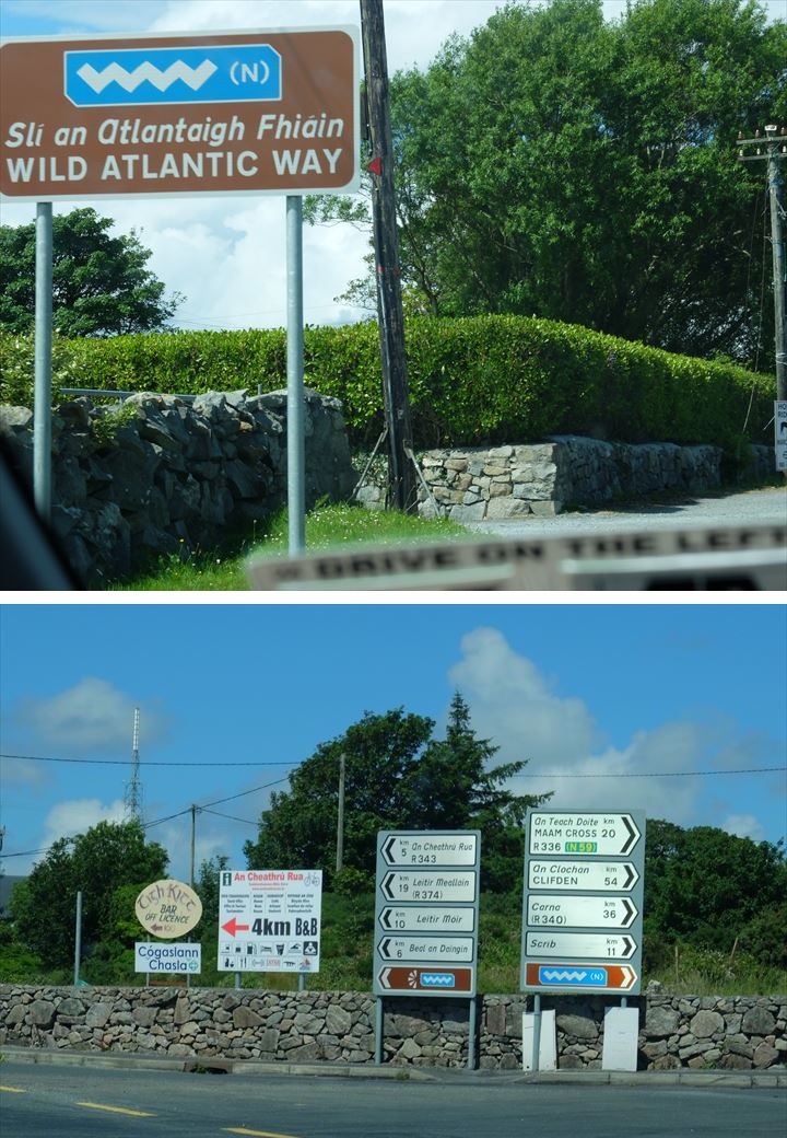 ワイルド・アトランティック・ウェイの道沿いには、青地に白いWWのロゴの標識も随所に立っています。画像でご覧ください。