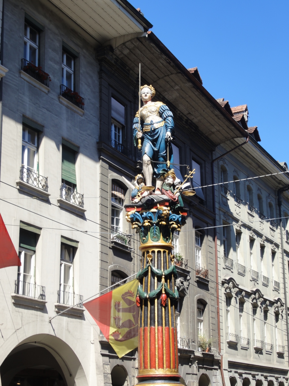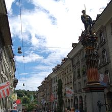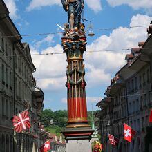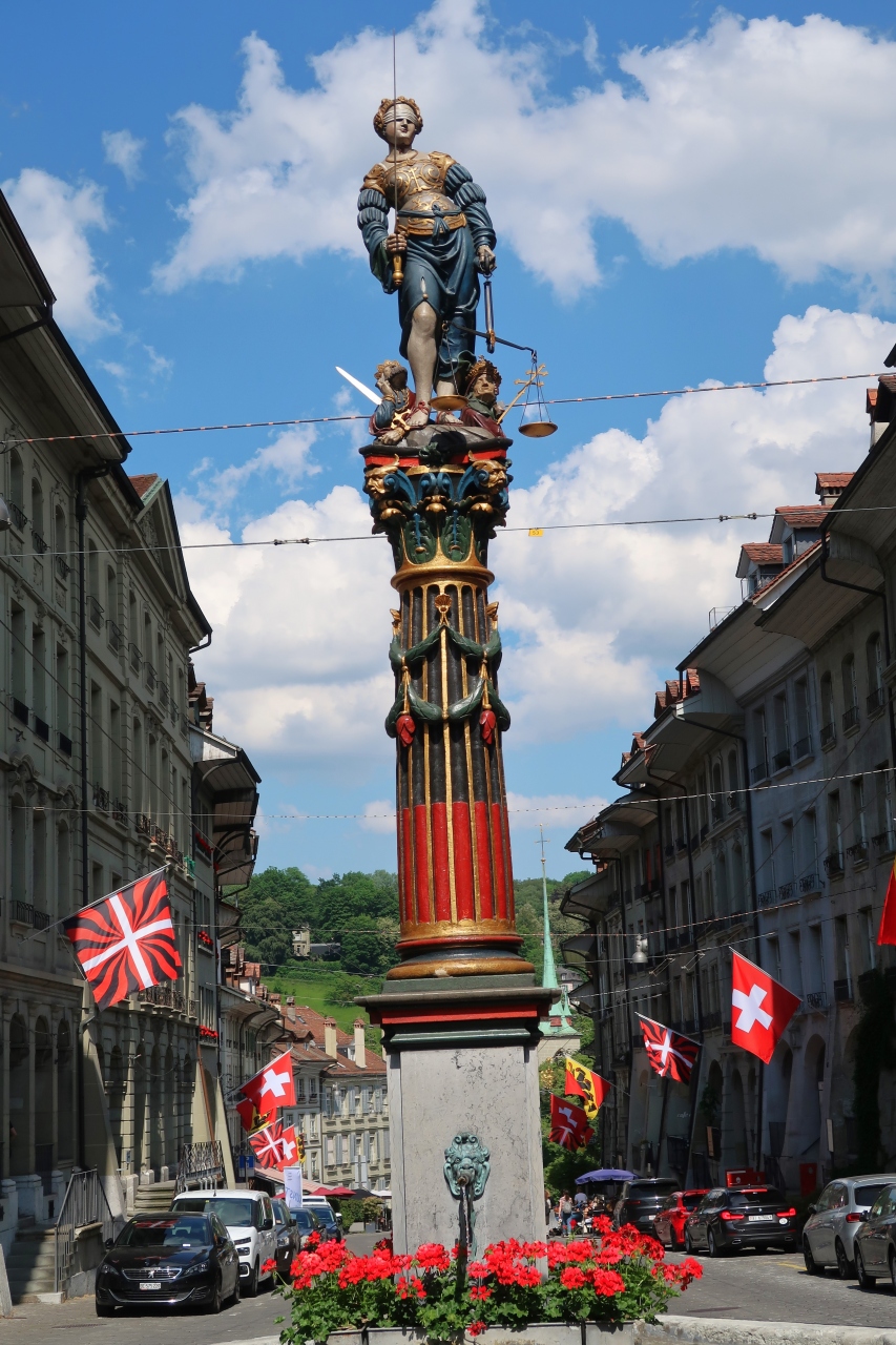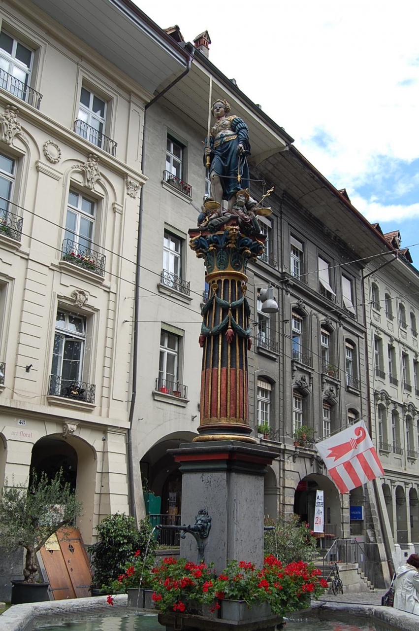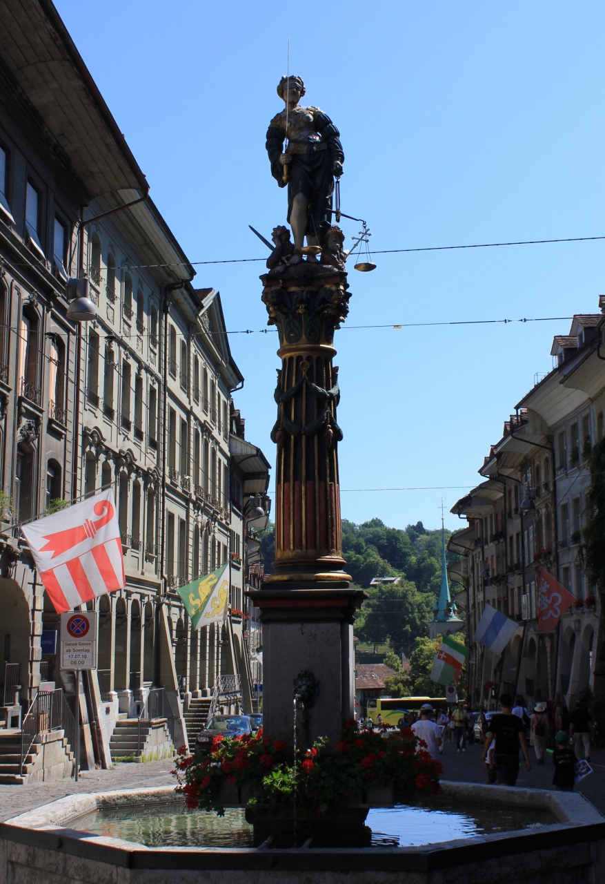 ベルン旧市街の東の端にあるニーデック橋の近く、メインストリート(グレヒティクカイト通り)にある噴水が正義の女神の泉(ゲレヒ... 続きを読むティクカイト・ブルネン)です。噴水にある彫像は、右手には剣、左手には天秤をもち、司法を象徴した姿です。 閉じる