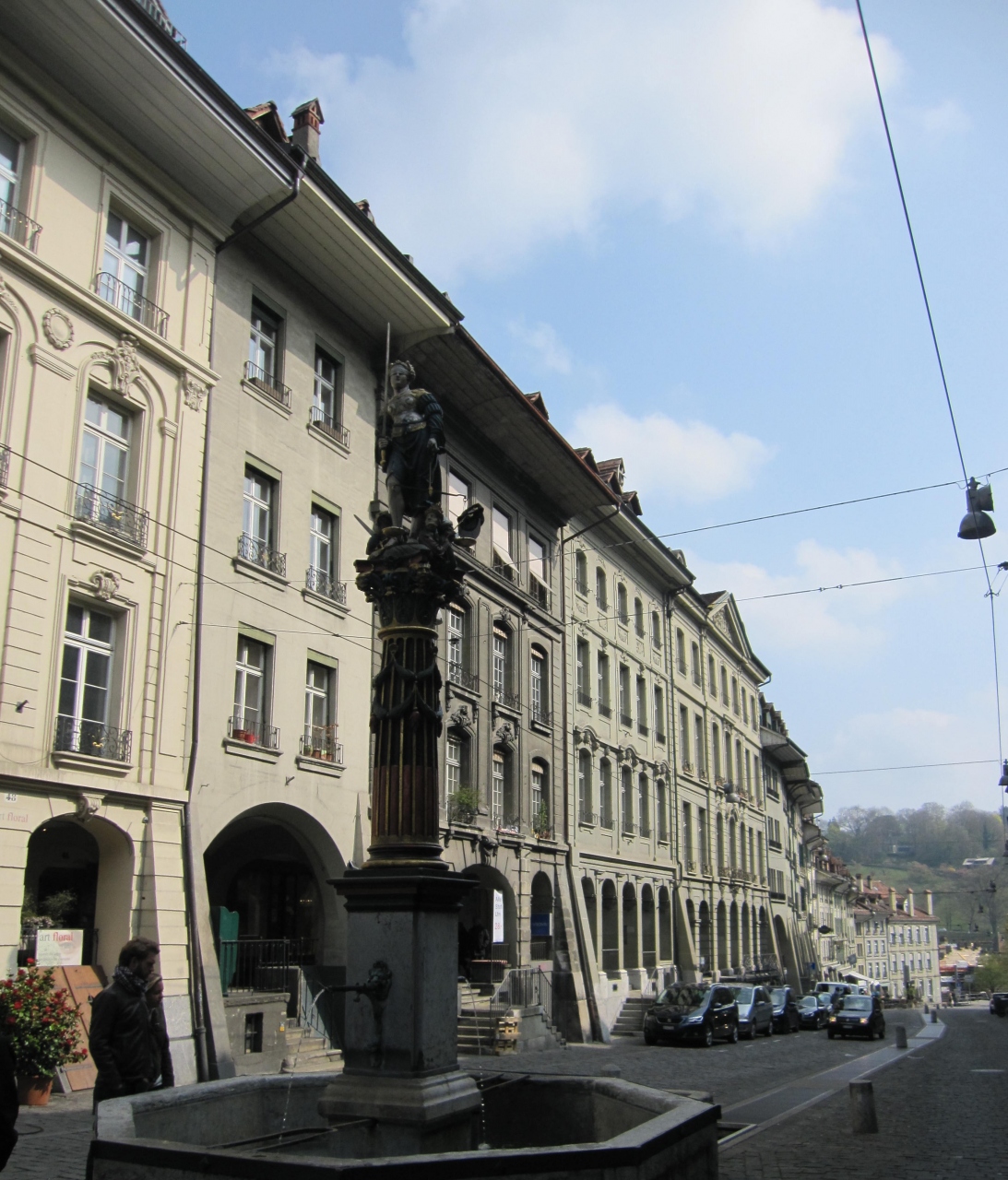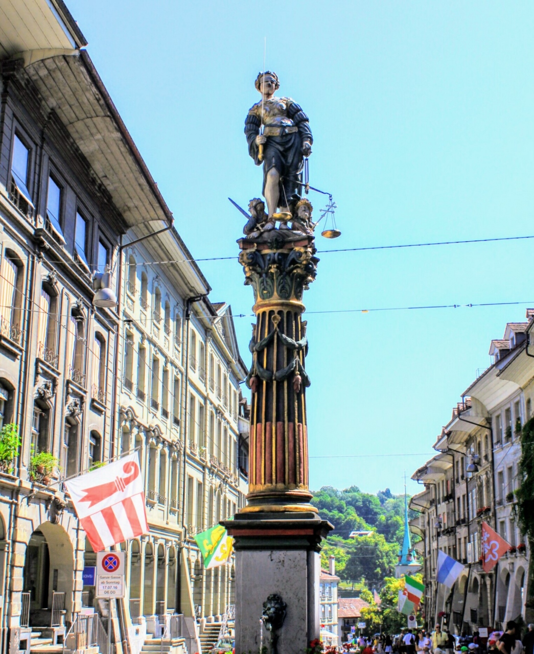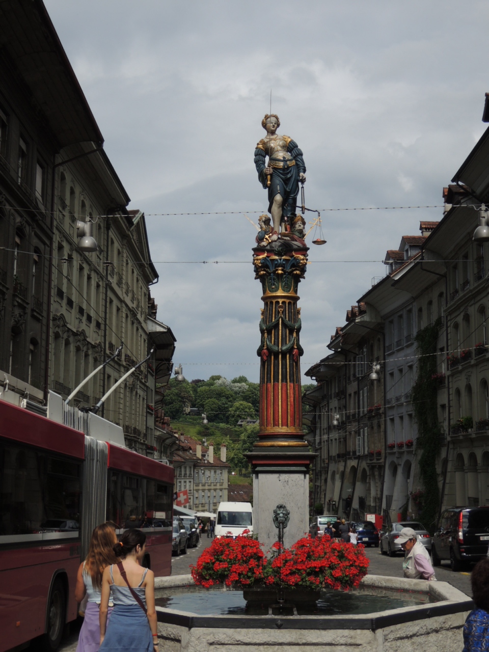 ベルン旧市街の東の端にあるニーデック橋の近く、メインストリート(グレヒティクカイト通り)にある噴水が正義の女神の泉(ゲレヒ... 続きを読むティクカイト・ブルネン)です。噴水にある彫像は、右手には剣、左手には天秤をもち、司法を象徴した姿です。 閉じる